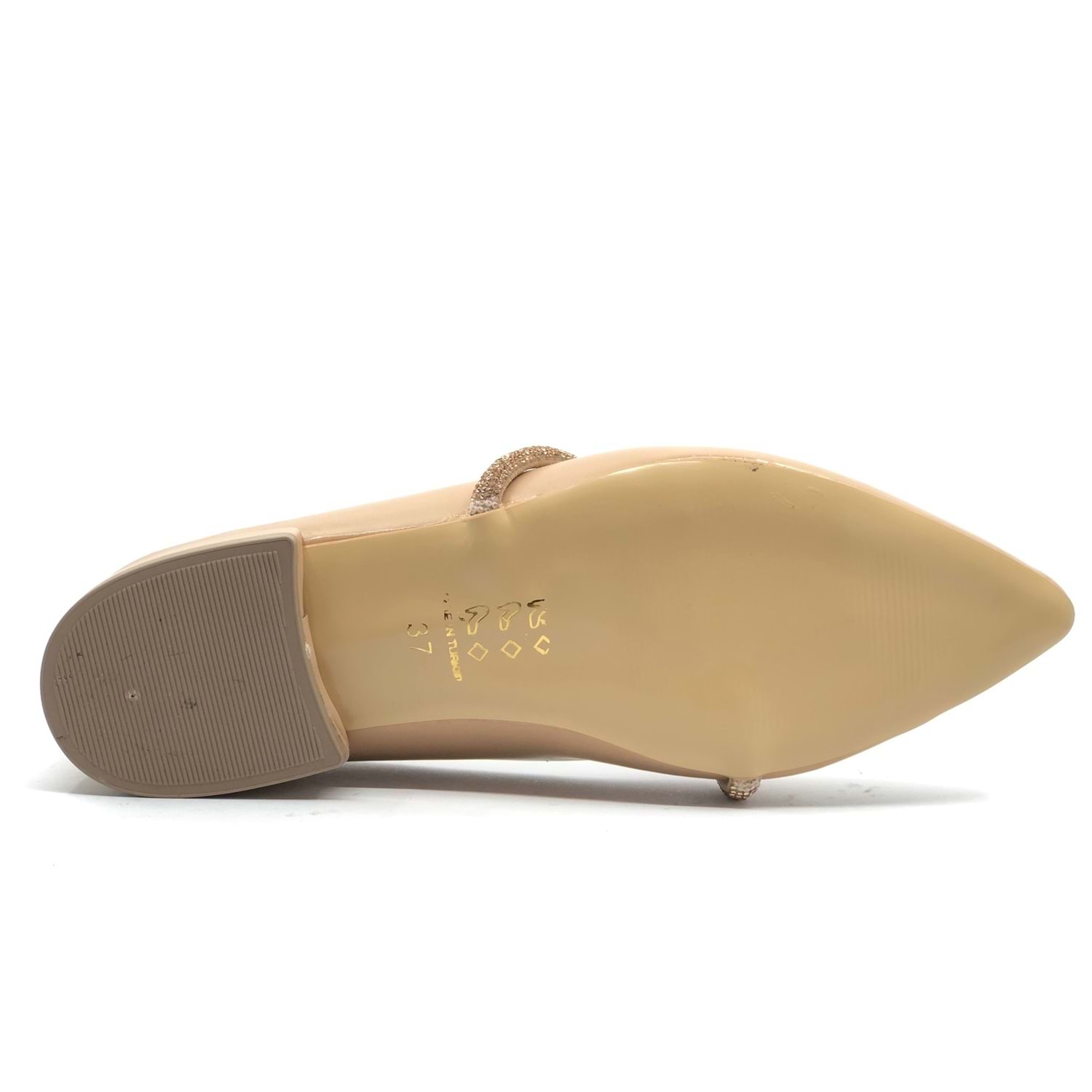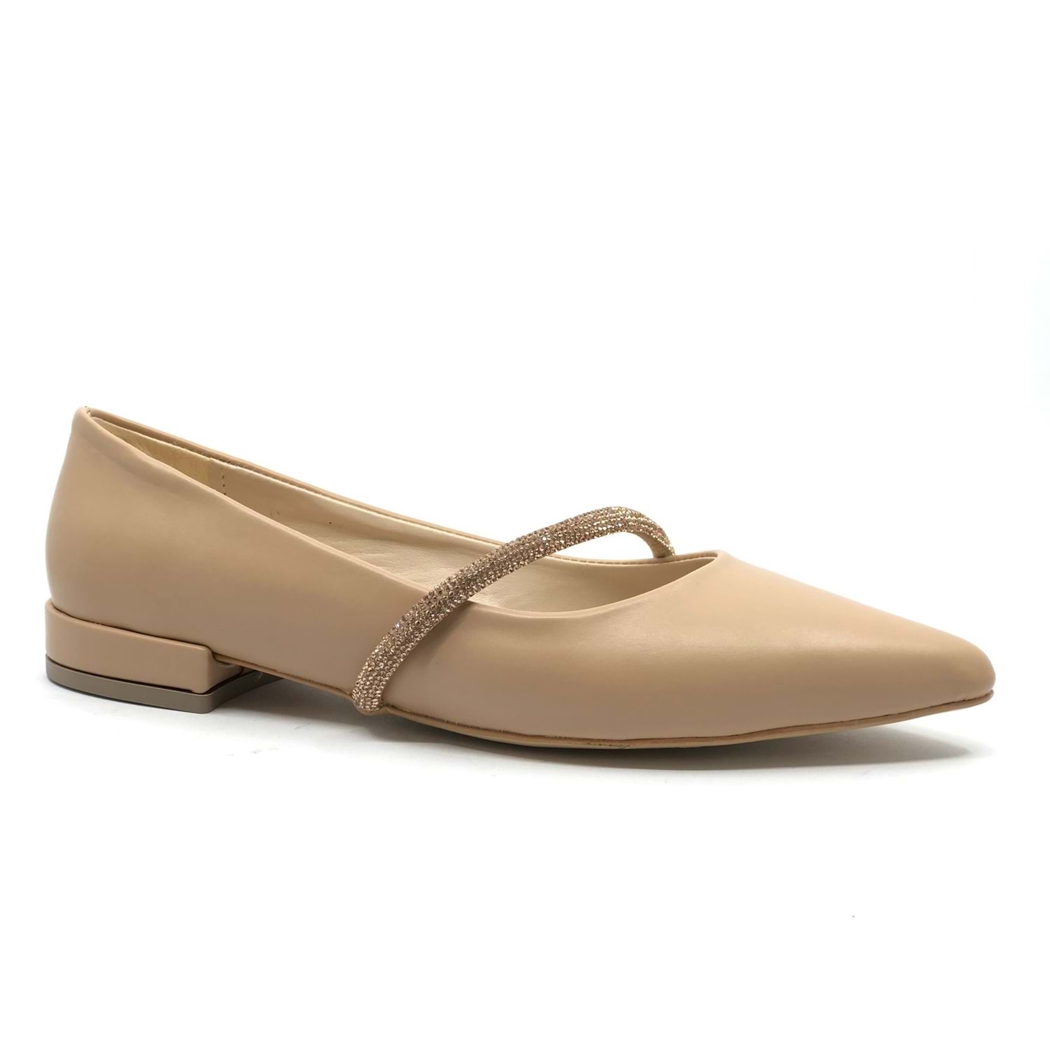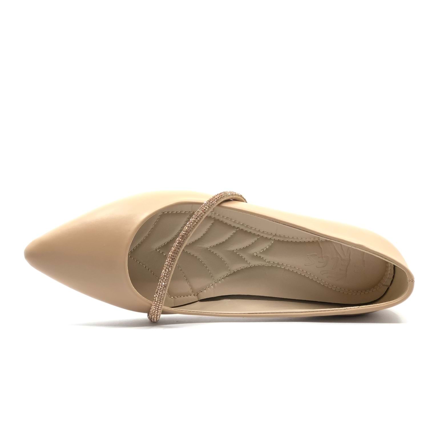 Feles Şerit Taş Dekolteli Yumuşak Düz Taban Kadın Babet
