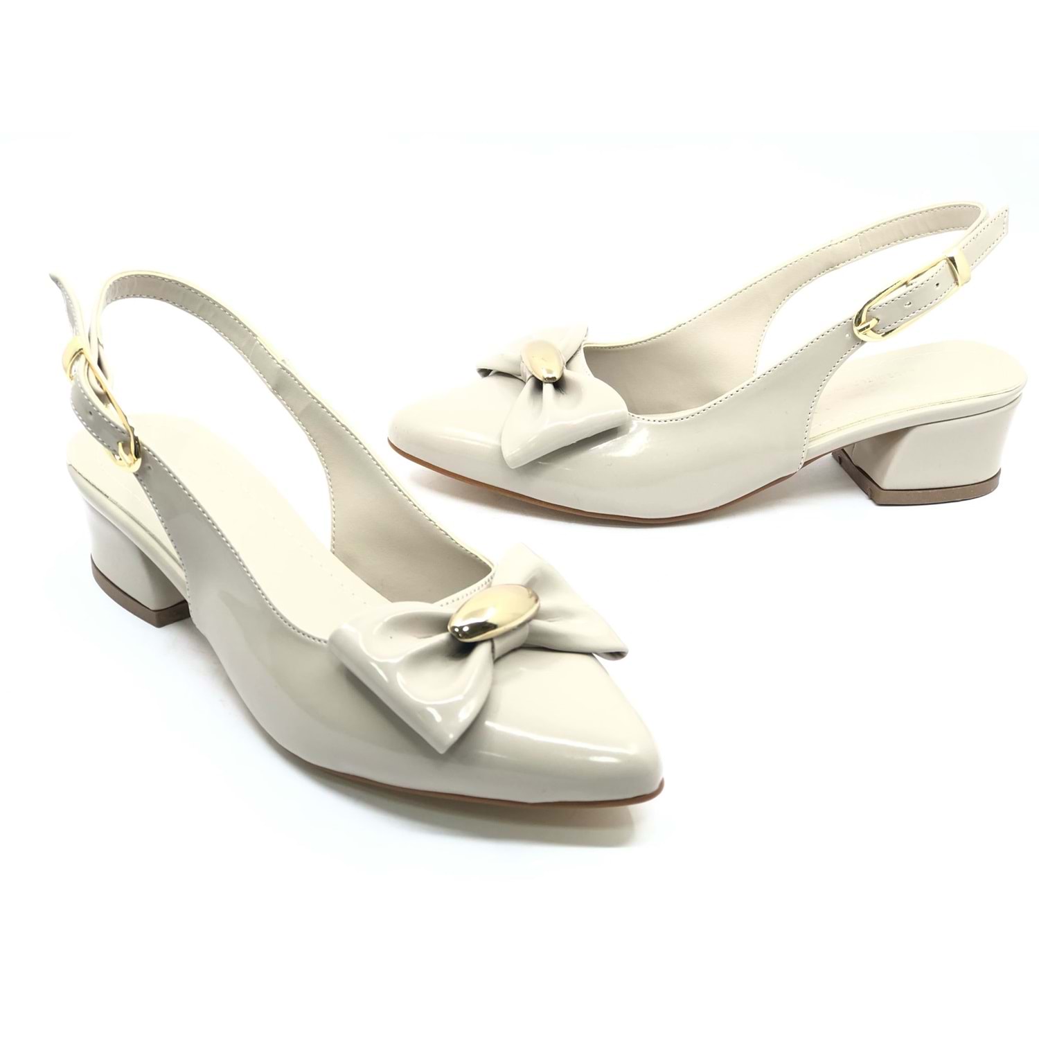 Mehtap Arkası Açık Fiyonk Detaylı Klasik Kadın Topuklu Ayakkabı