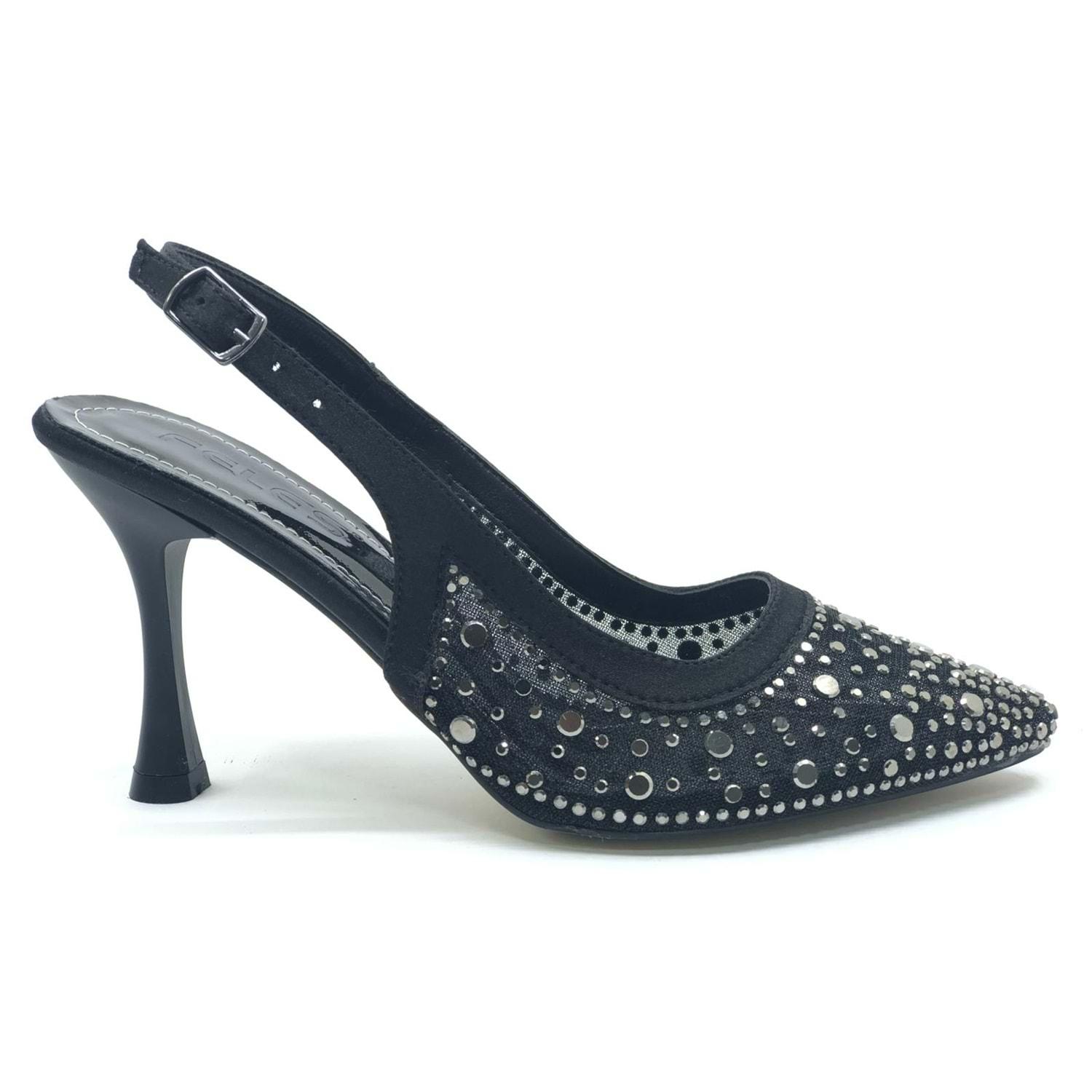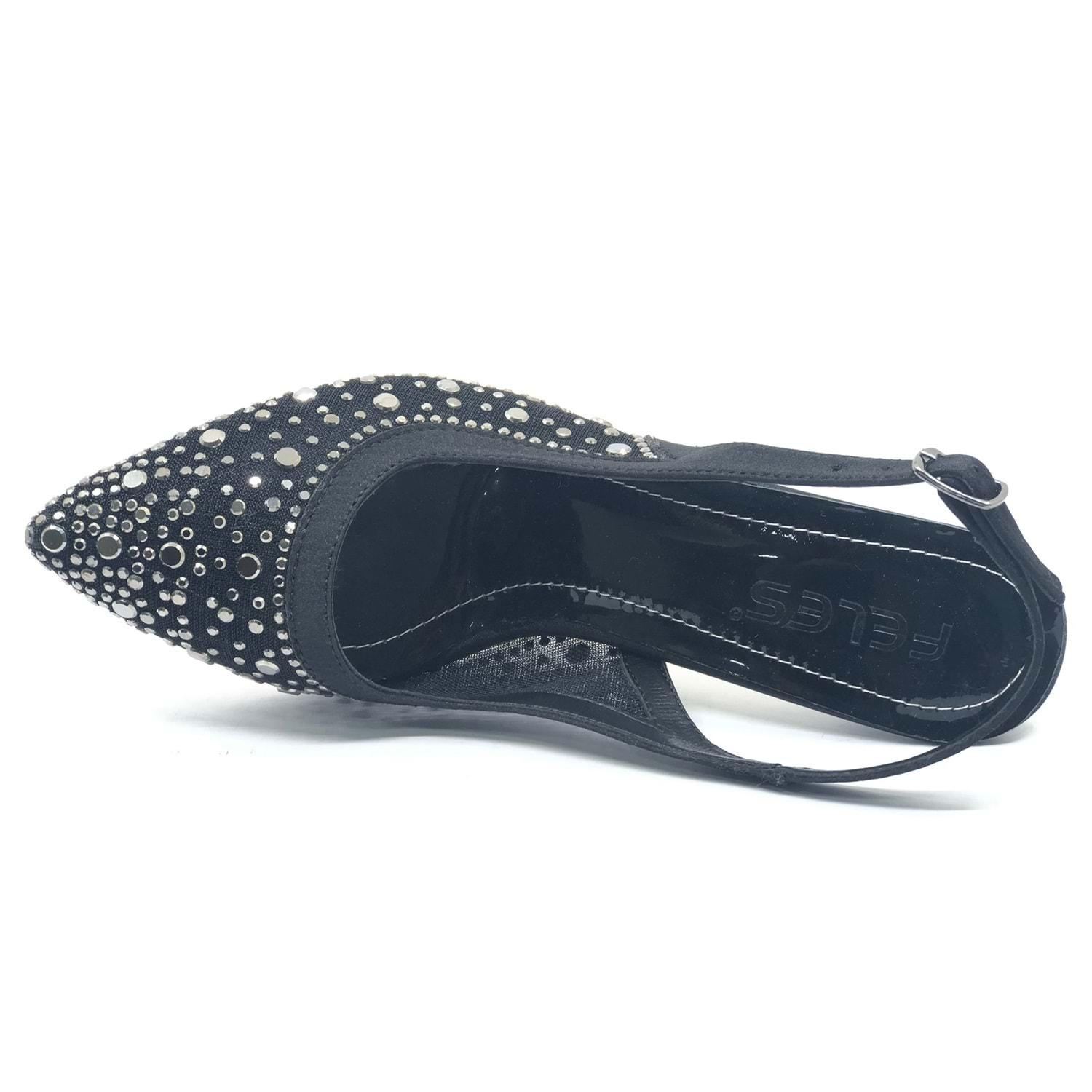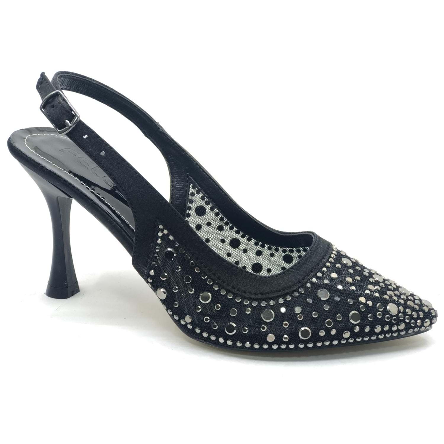Feles Arkası Açık Şeffaf Taş Detaylı Sindirella Kadın Topuklu Ayakkabı
