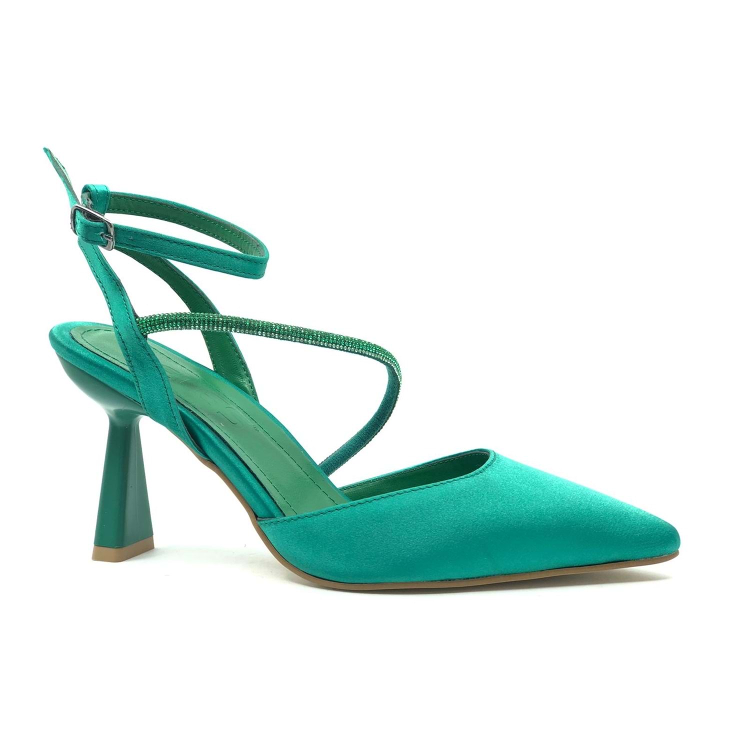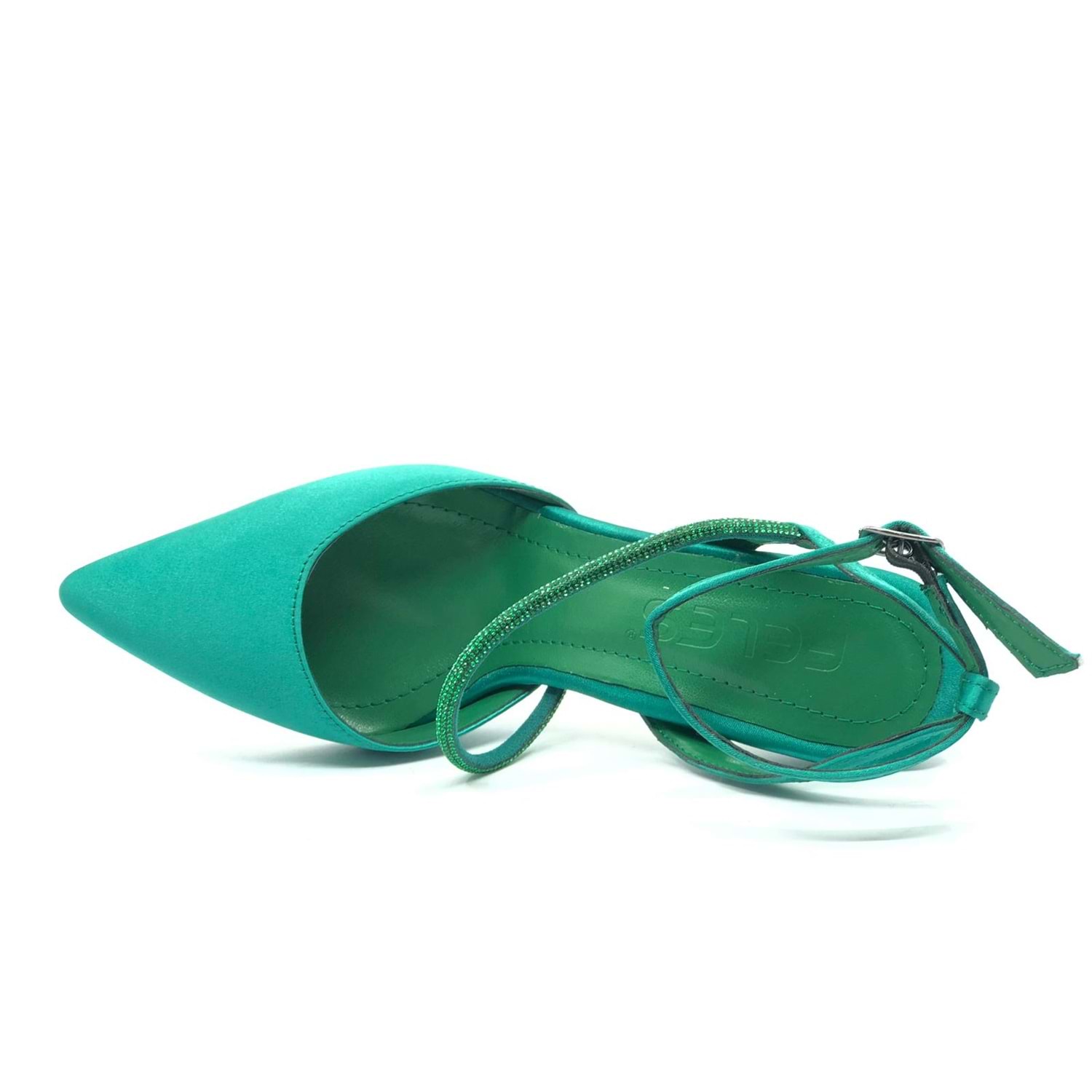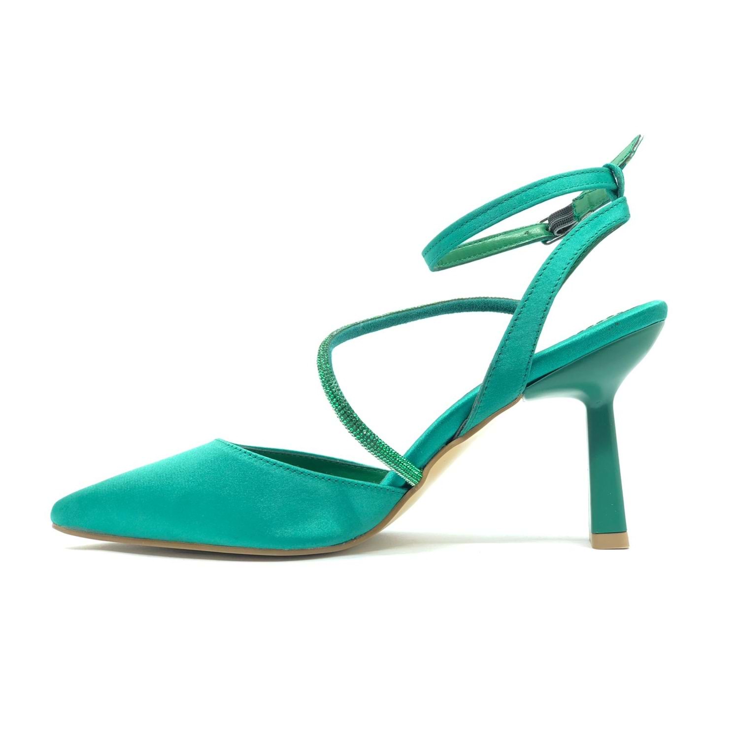 Feles Arkası Açık Şerit Taşlı Stiletto Kadın Topuklu Ayakkabı