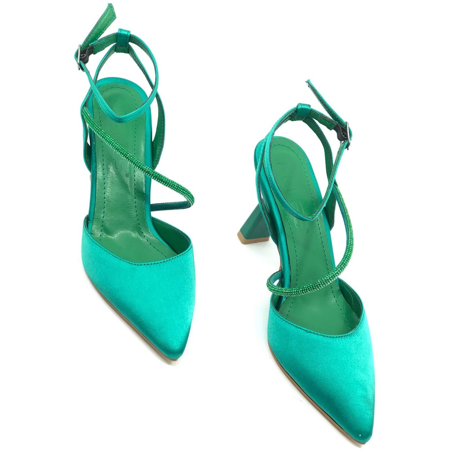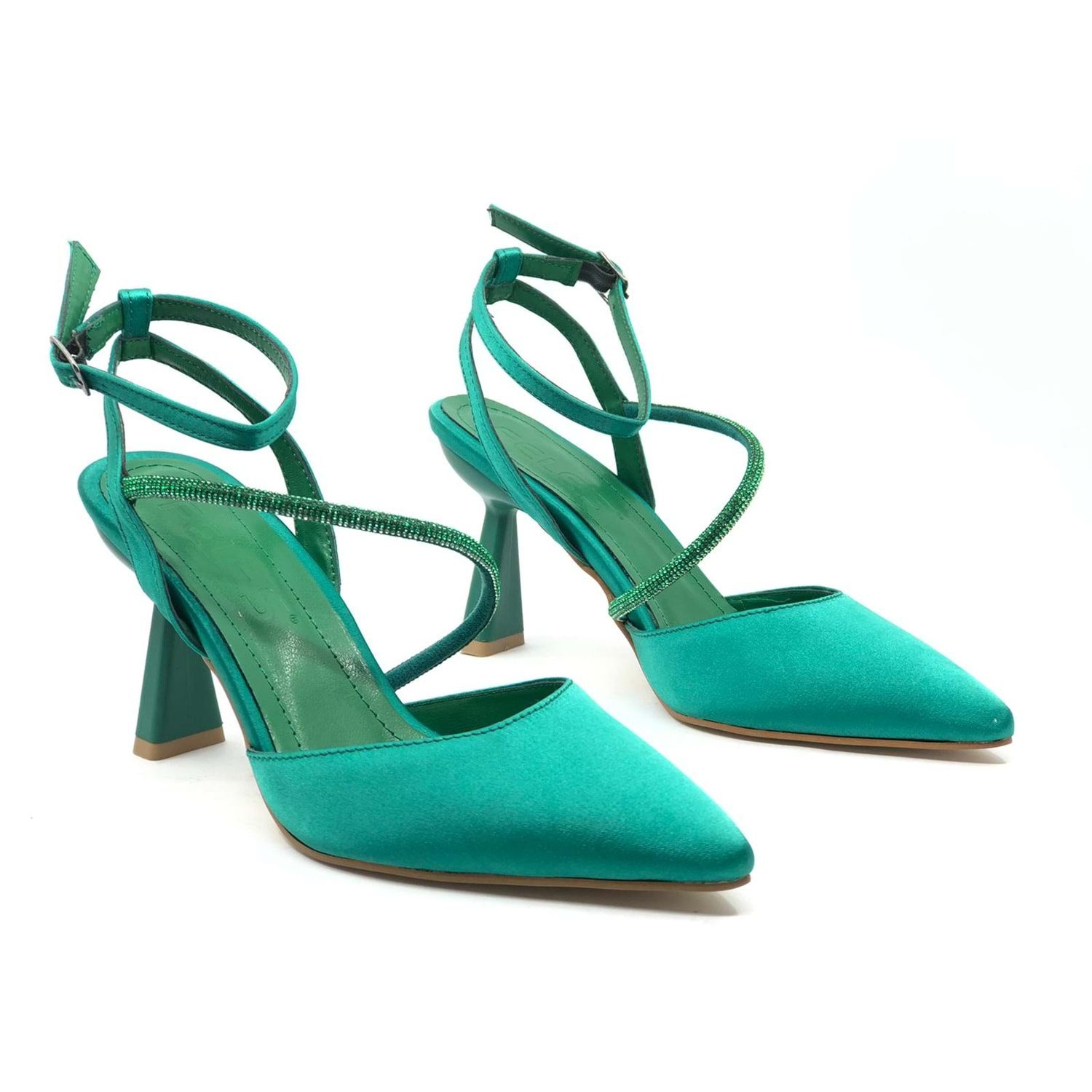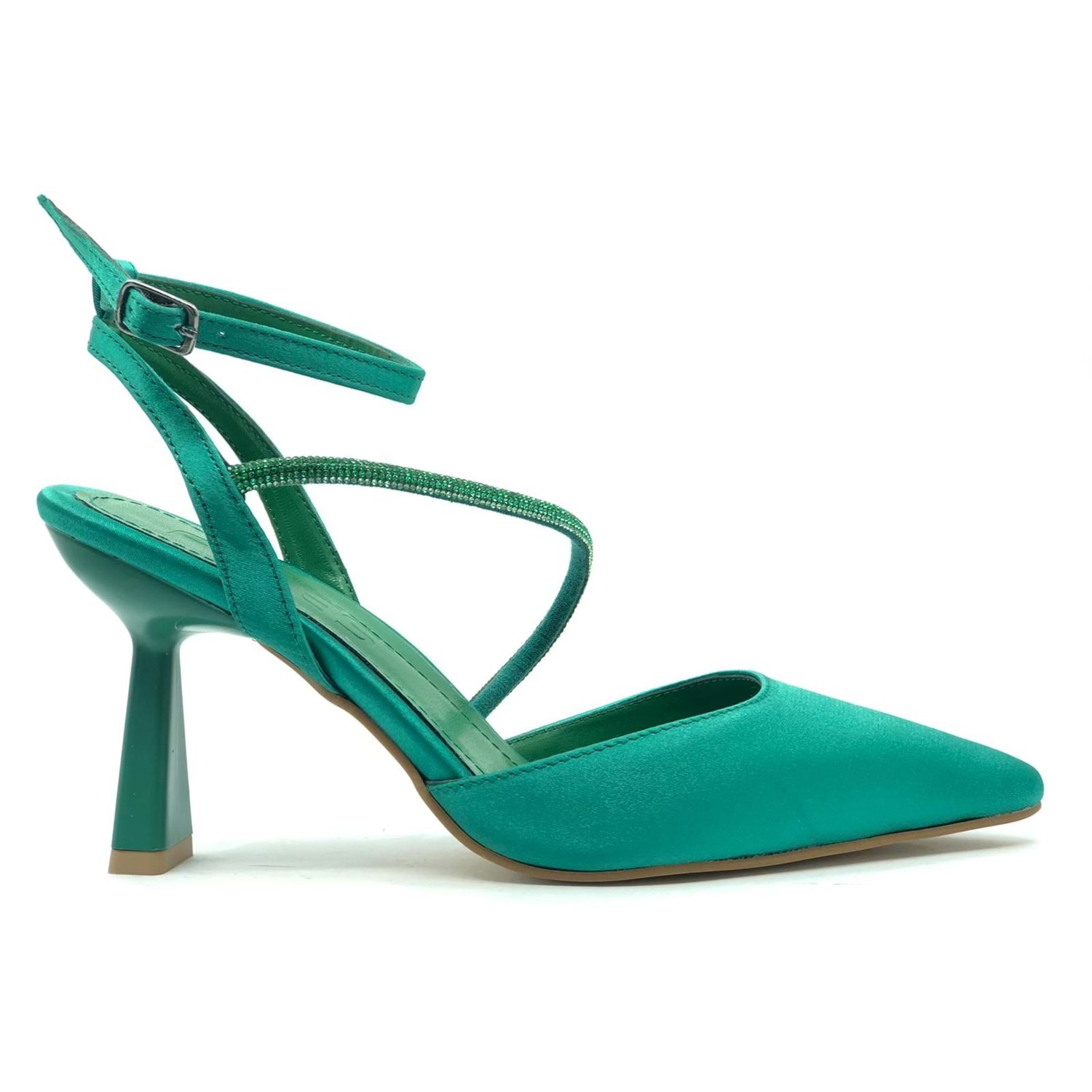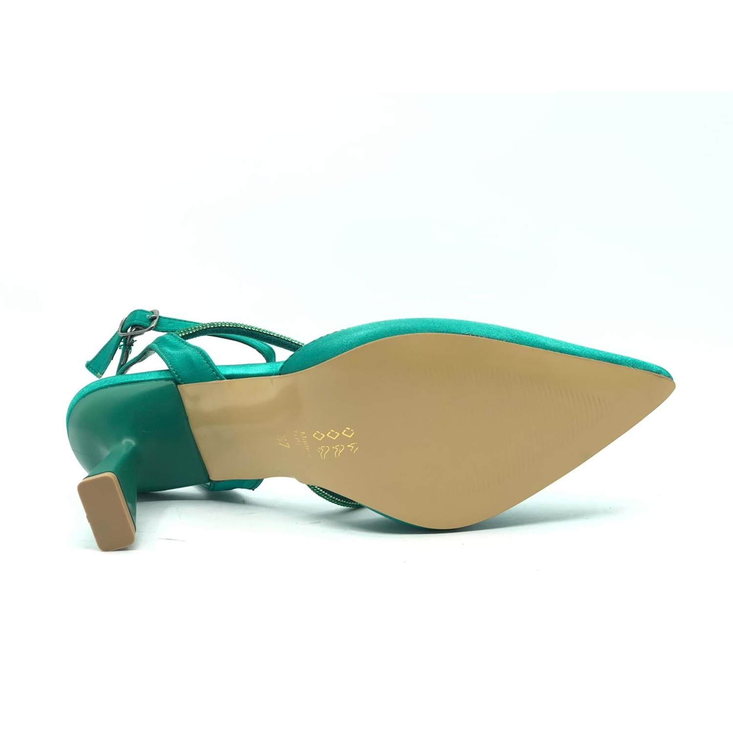 Feles Arkası Açık Şerit Taşlı Stiletto Kadın Topuklu Ayakkabı