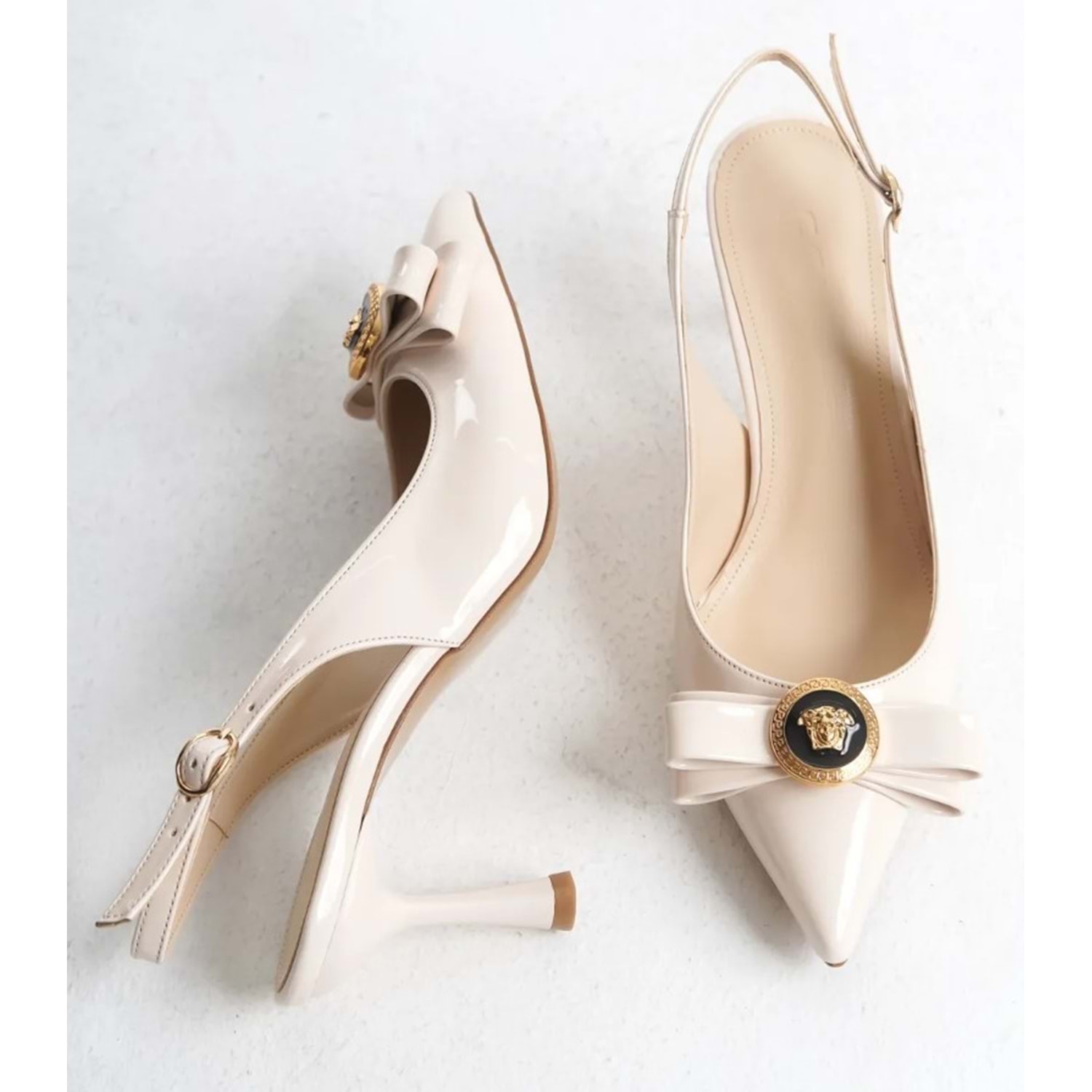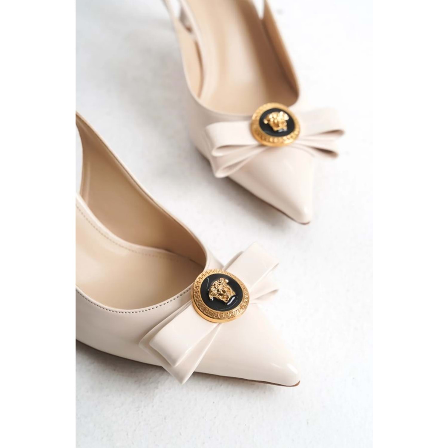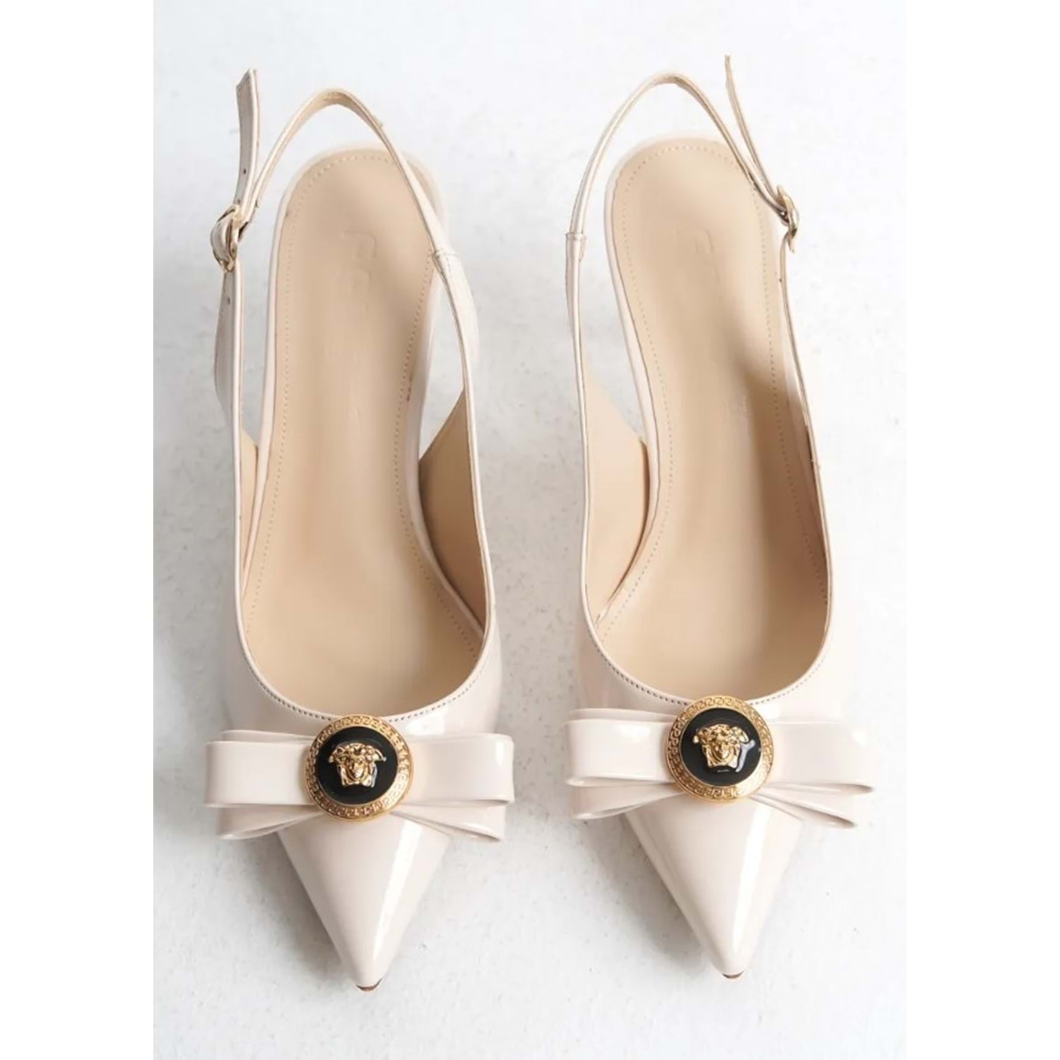 Feles Fiyonk Sarı Toka Detaylı Arkası Açık Stiletto Kadın Topuklu Ayakkabı