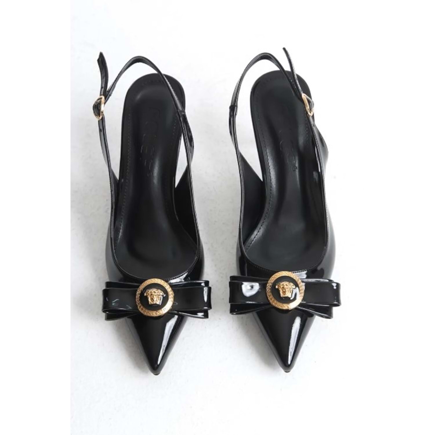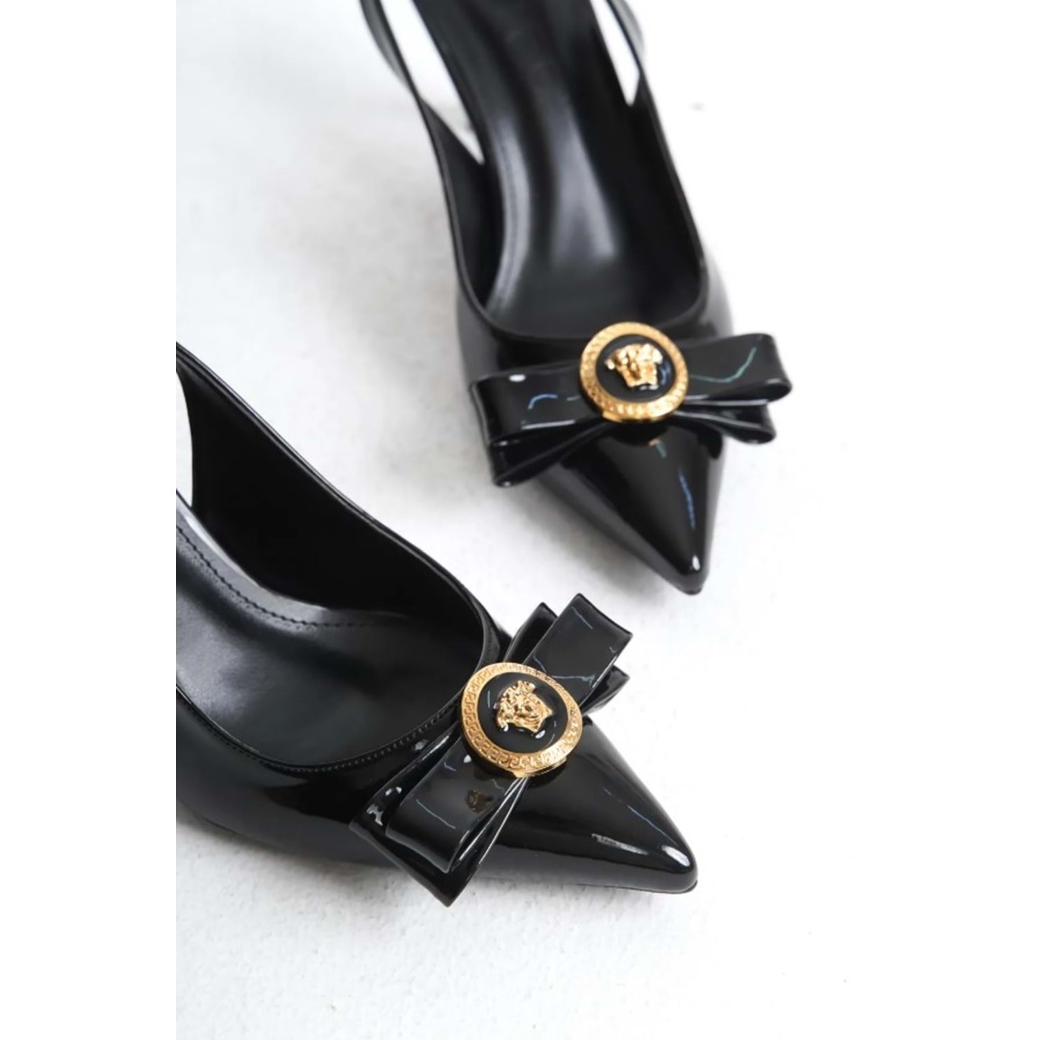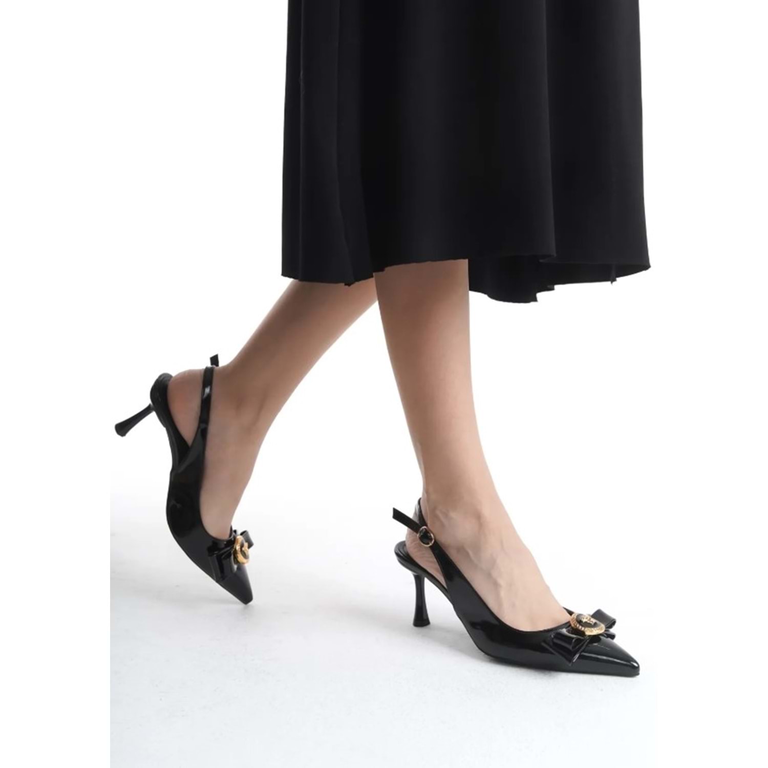 Feles Fiyonk Sarı Toka Detaylı Arkası Açık Stiletto Kadın Topuklu Ayakkabı