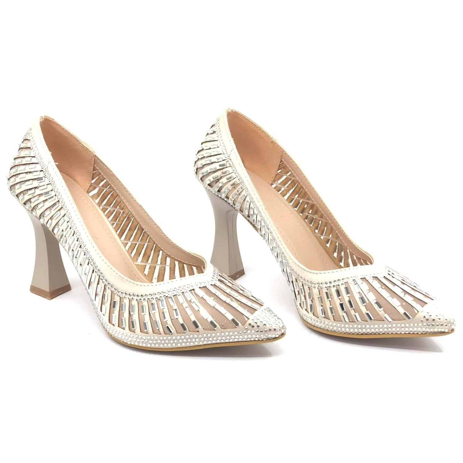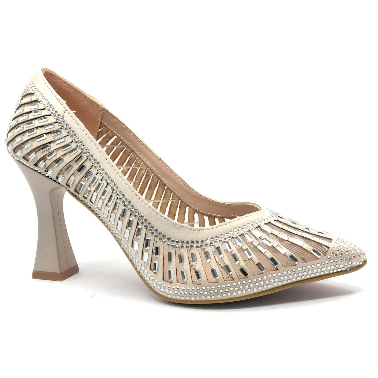 Feles Kadeh Topuk Sindirella Taşlı Stiletto Kadın Topuklu Ayakkabı