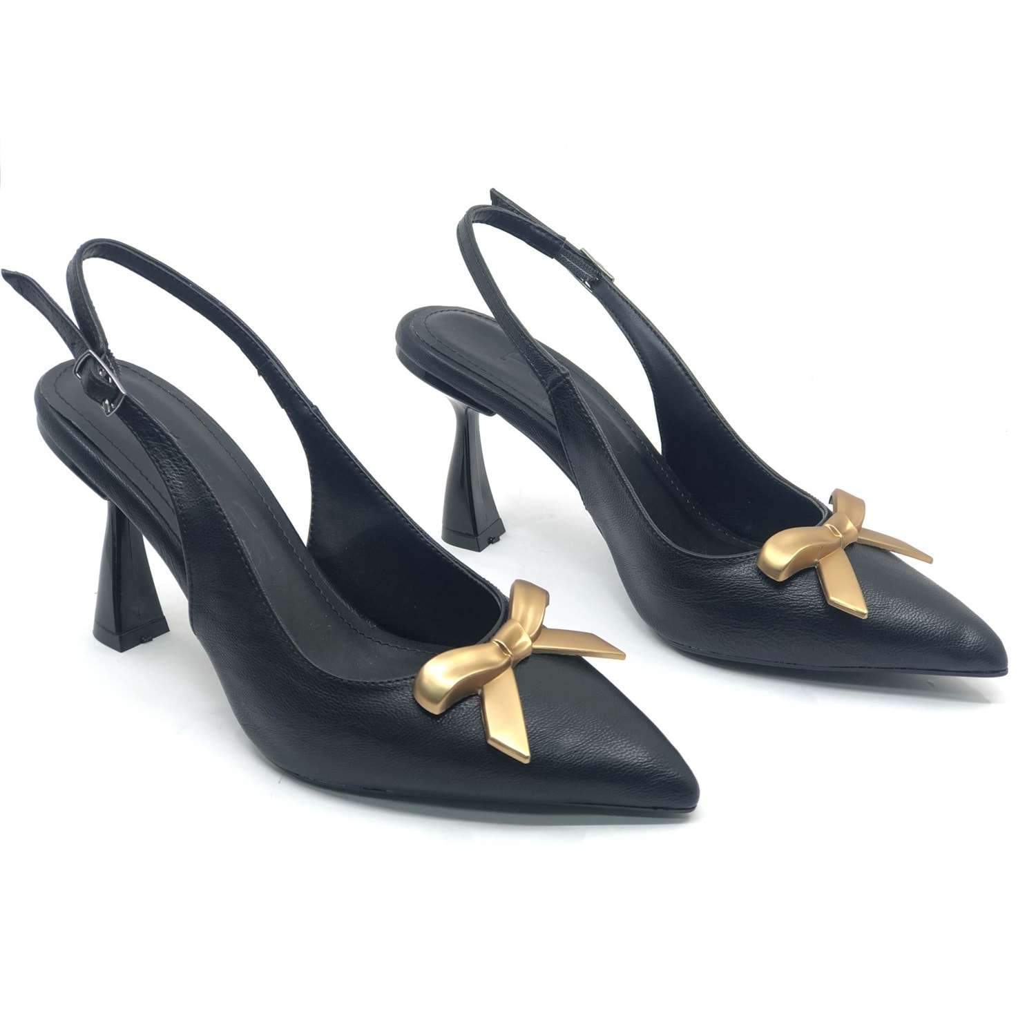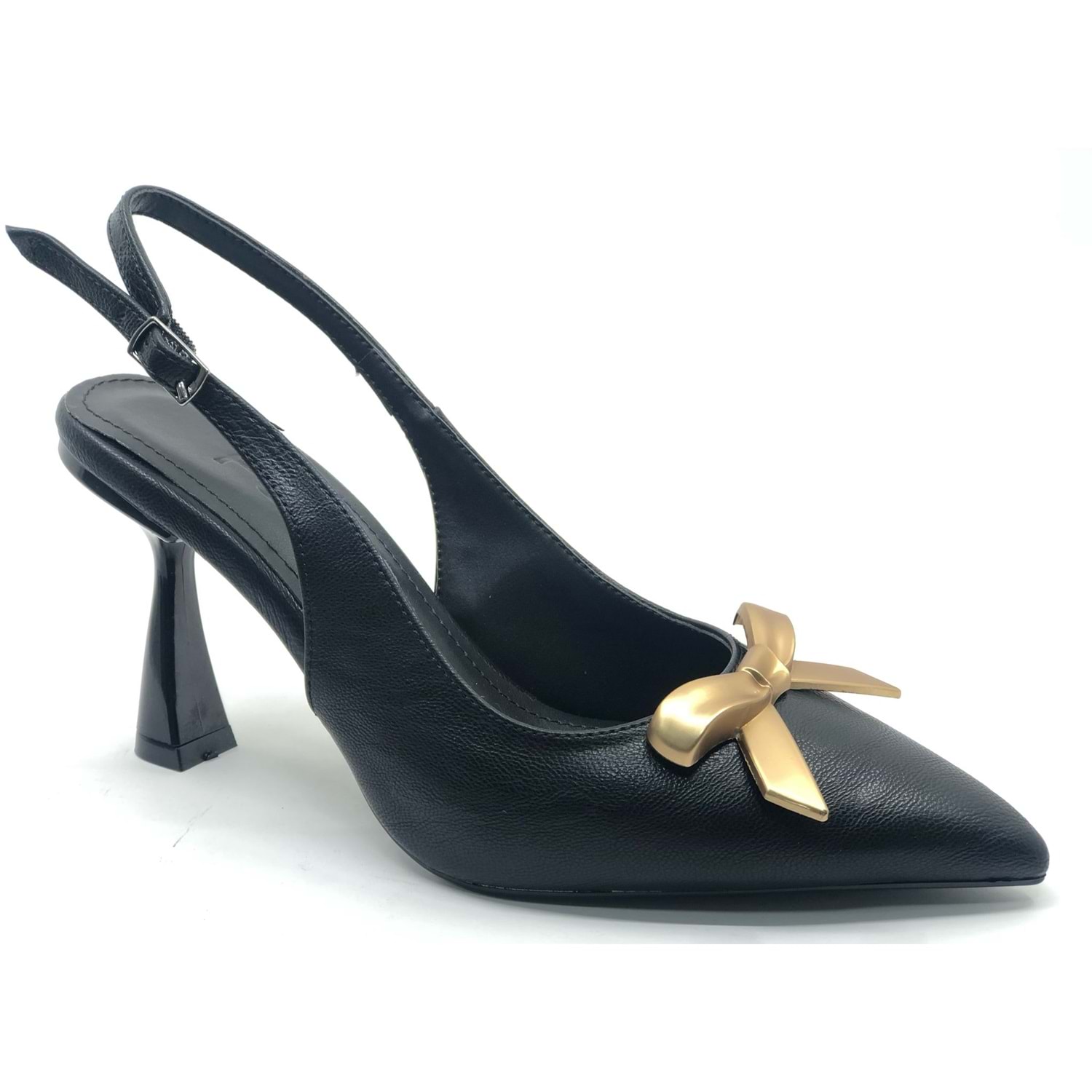 Feles Kurdela Toka Detaylı Arkası Açık Stiletto Kadın Topuklu Ayakkabı