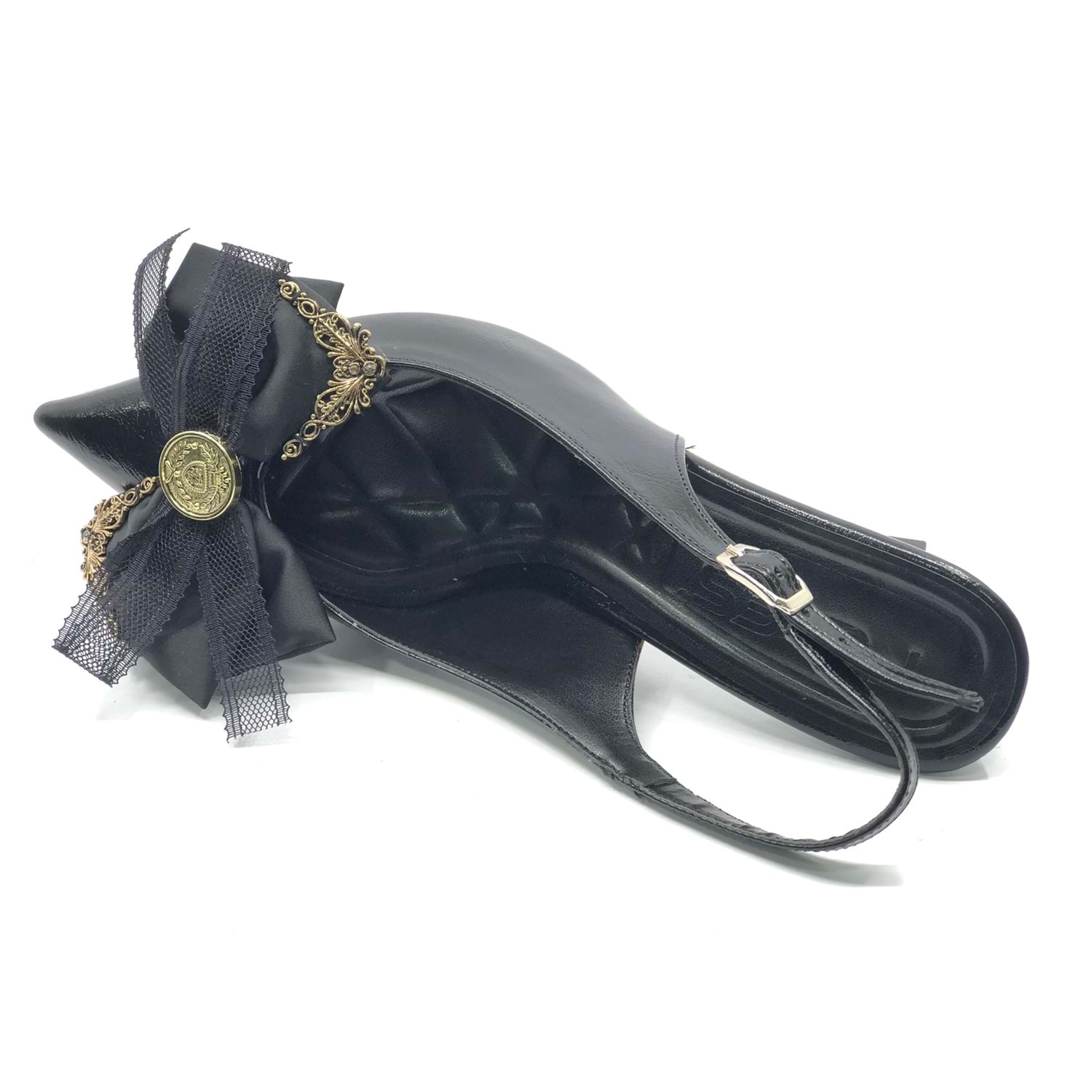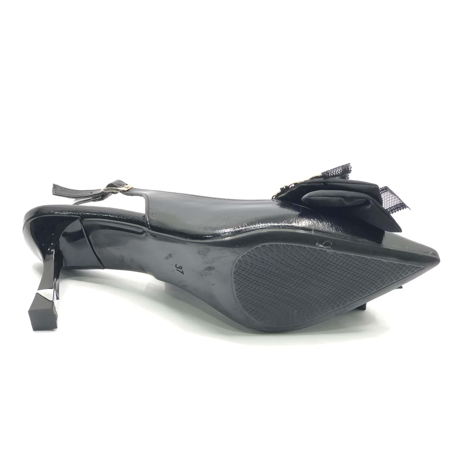 Feles Saten Fiyonk Detaylı Arkası Açık Stiletto Kadın Topuklu Ayakkabı