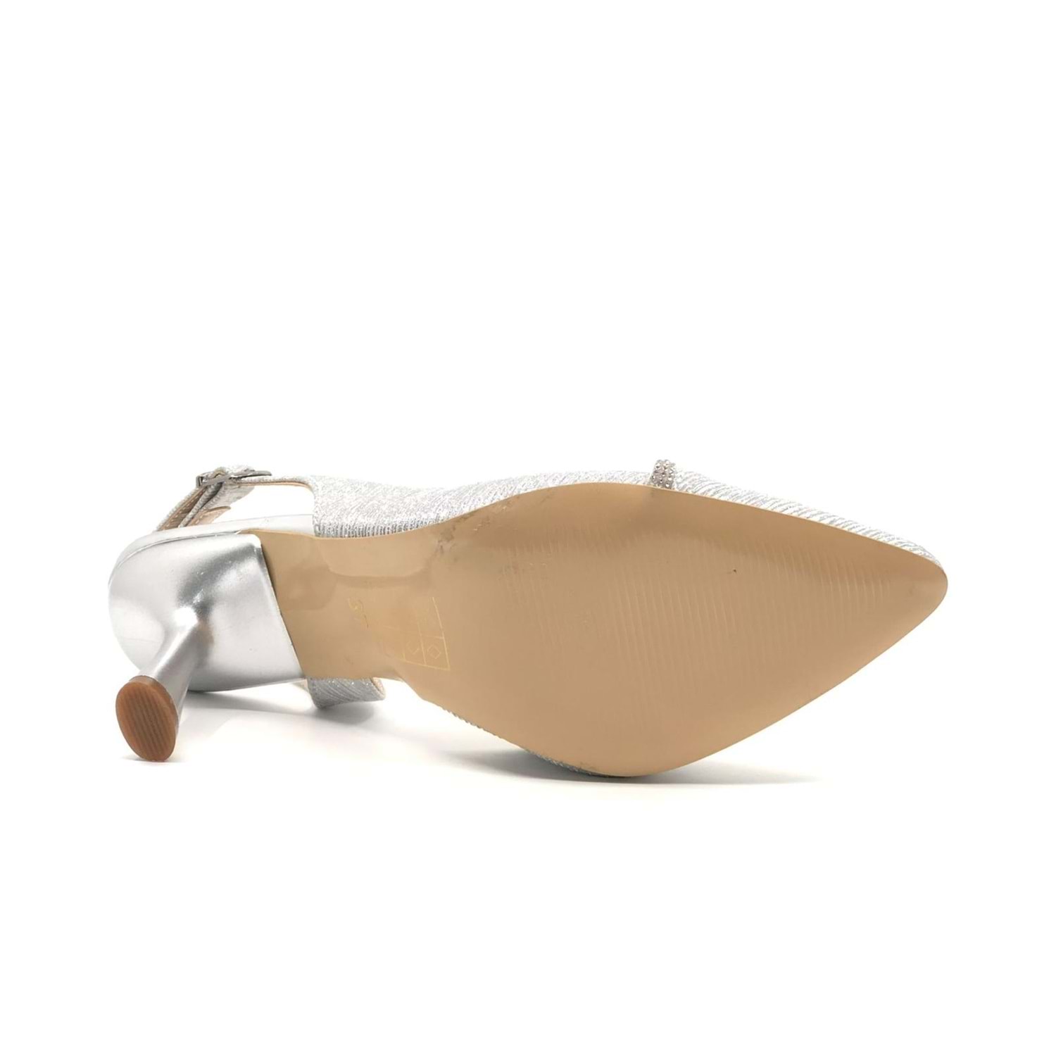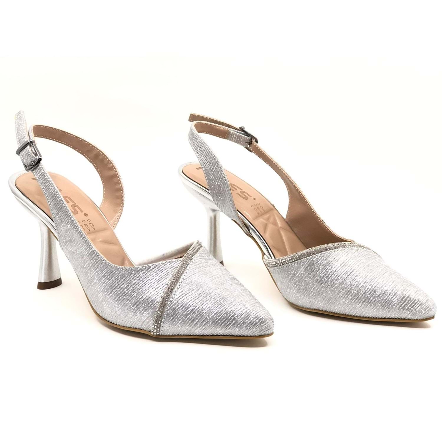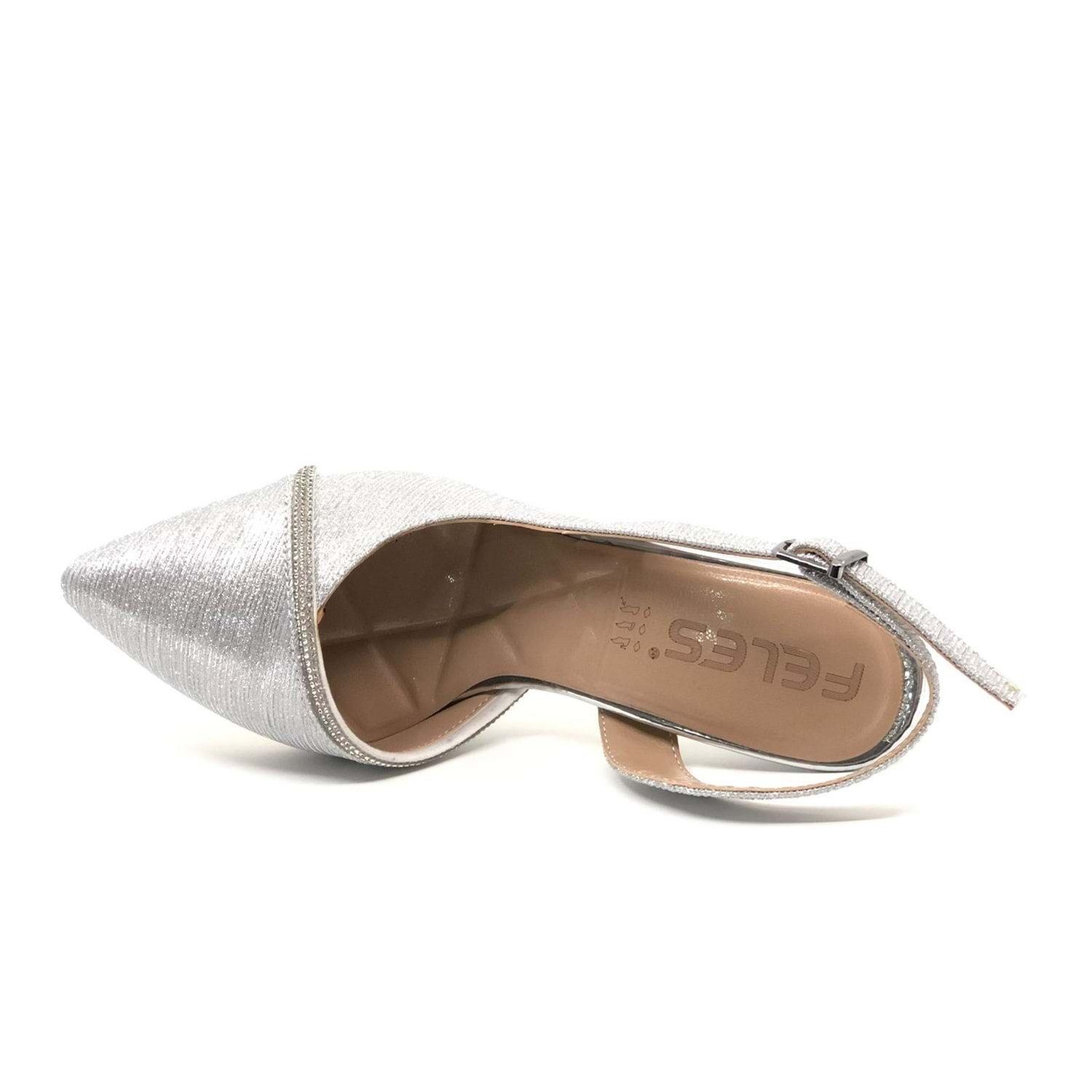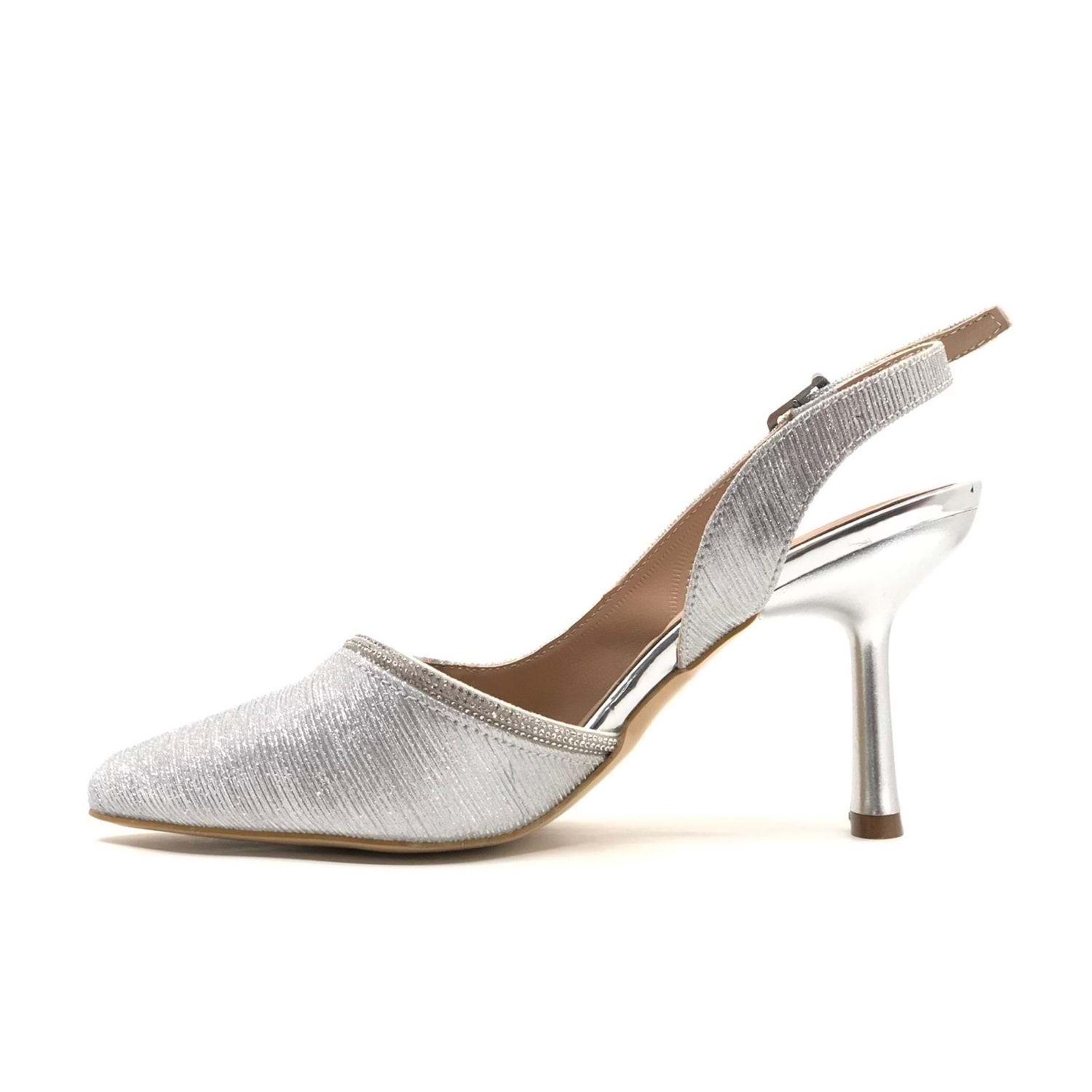 Feles Saten Şerit Taşlı Arkası Açık Stiletto Kadın Topuklu Ayakkabı