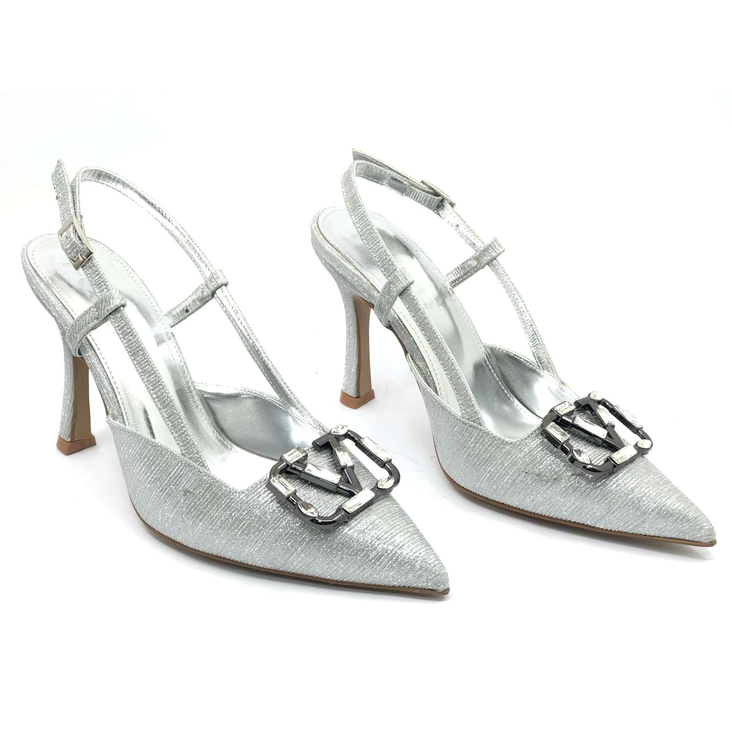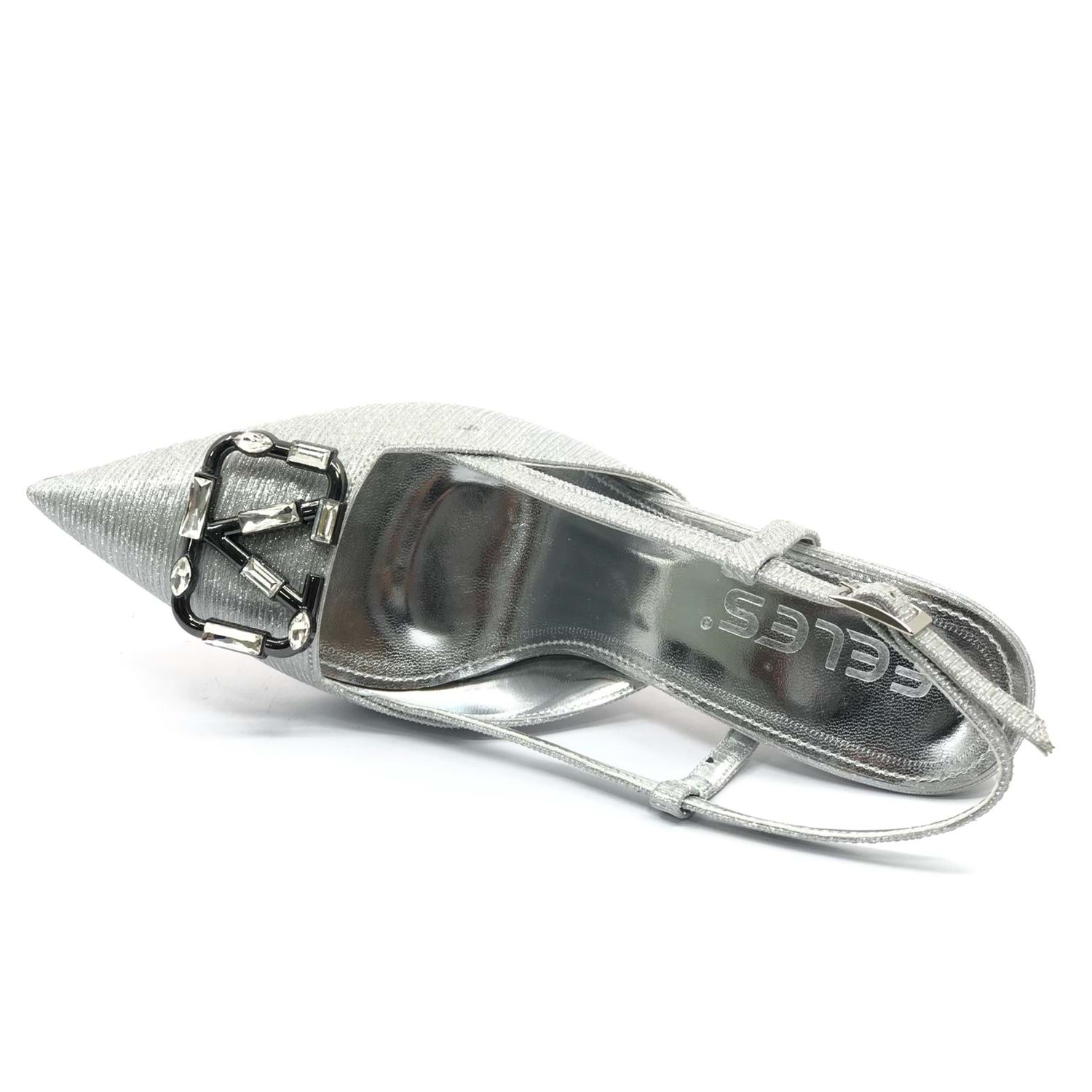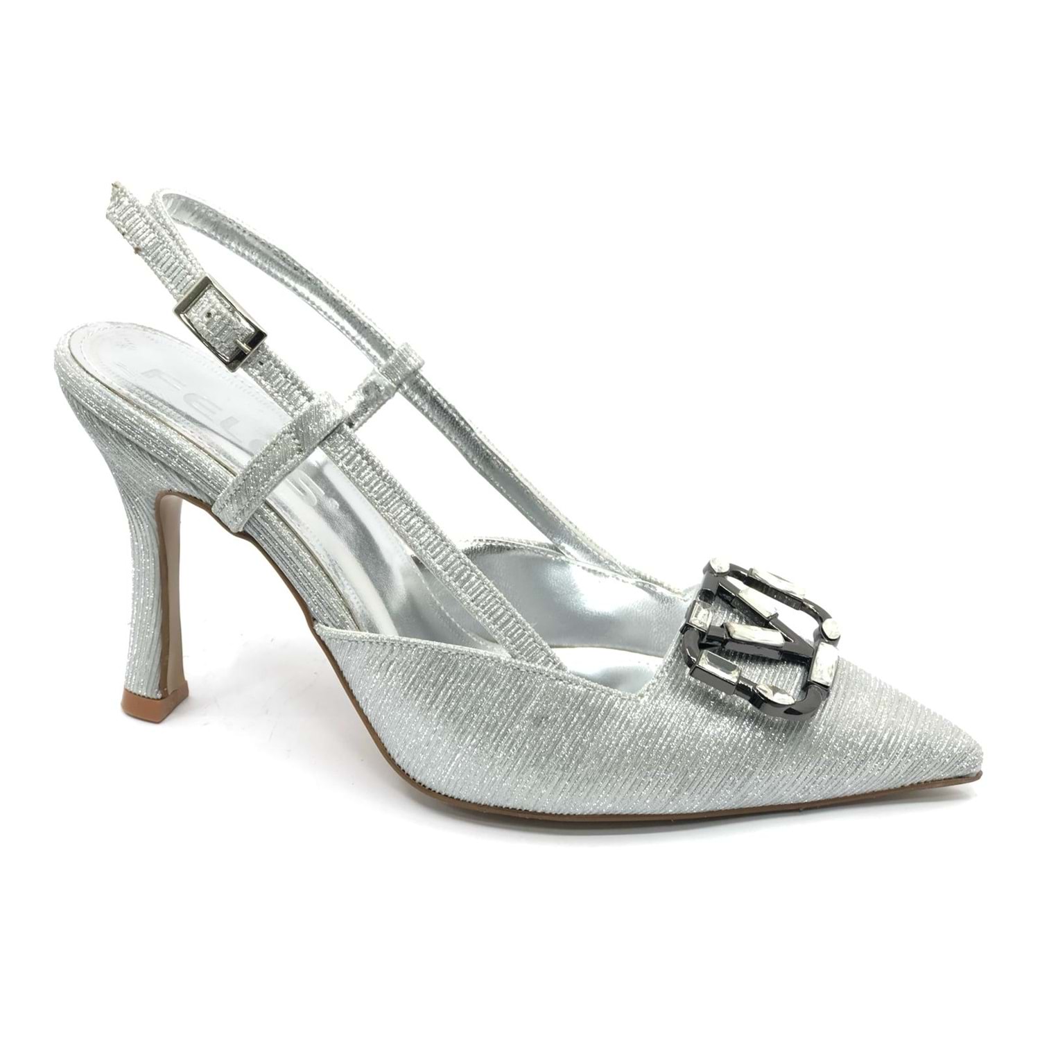 Feles V Toka Detaylı Arkası Açık Stiletto Kadın Topuklu Ayakkabı