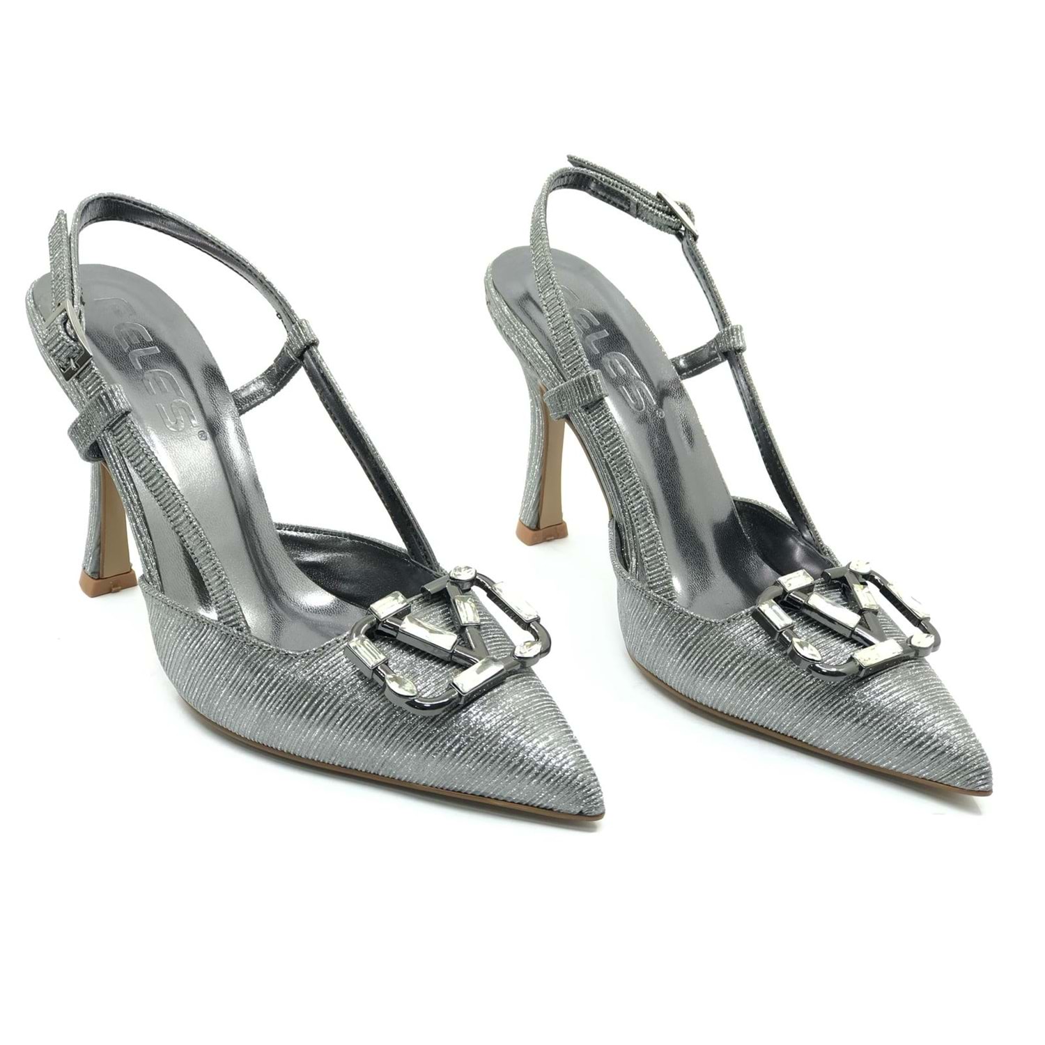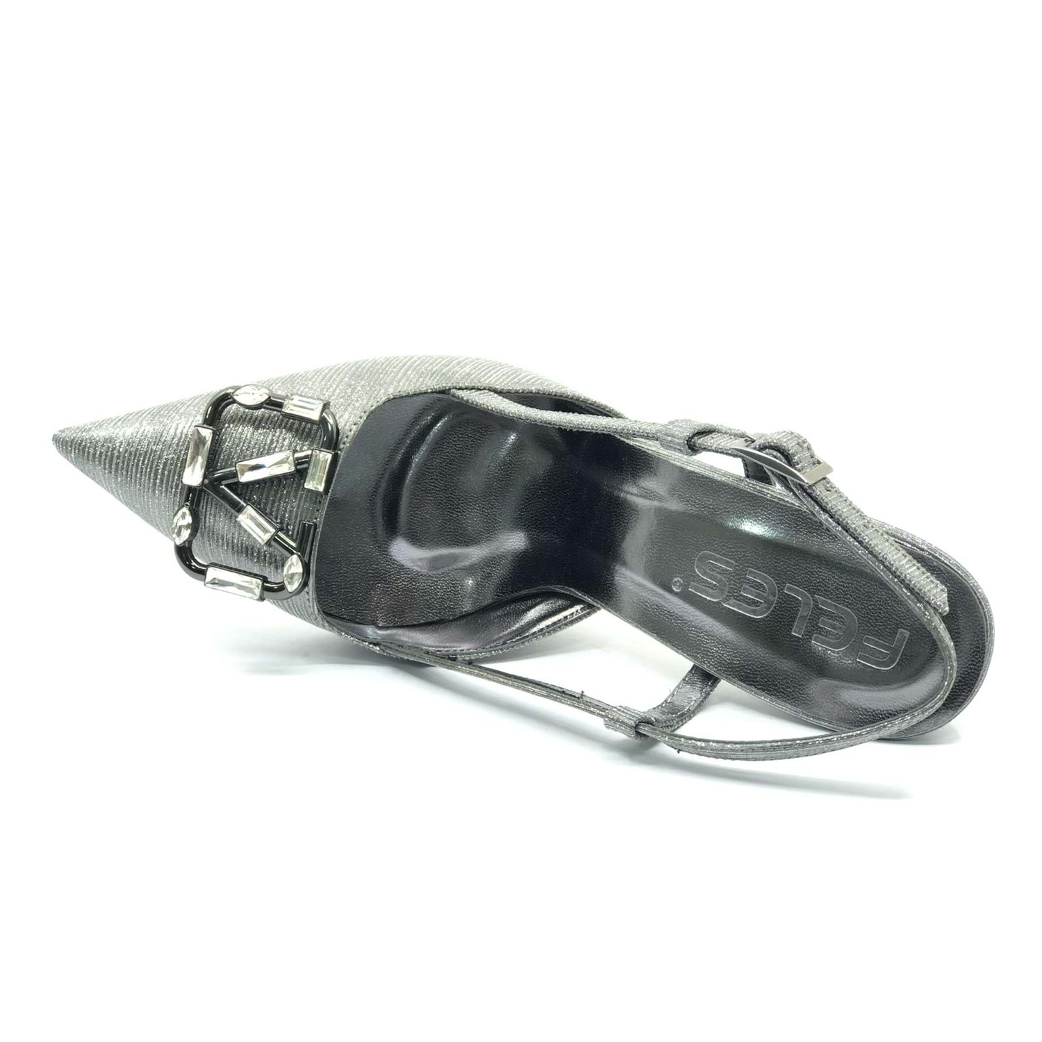 Feles V Toka Detaylı Arkası Açık Stiletto Kadın Topuklu Ayakkabı