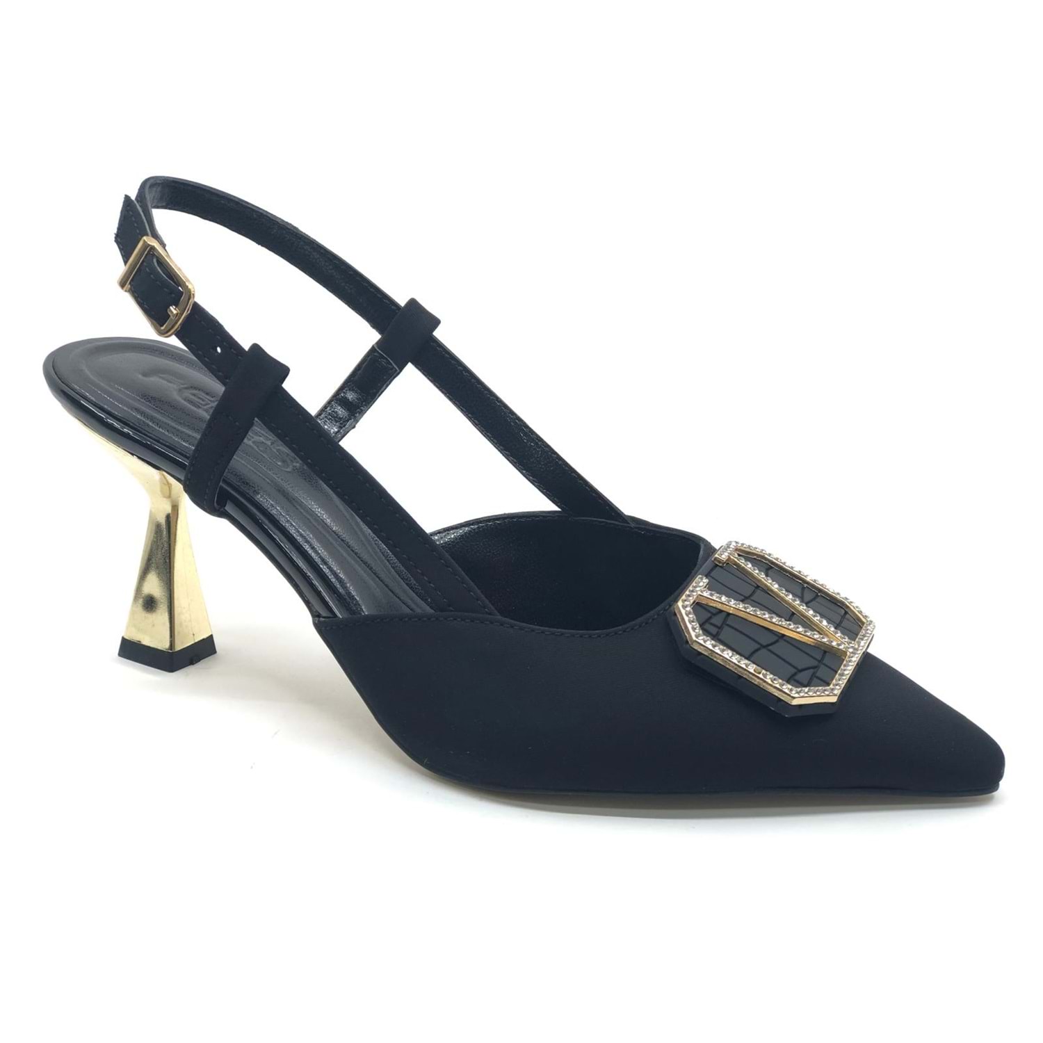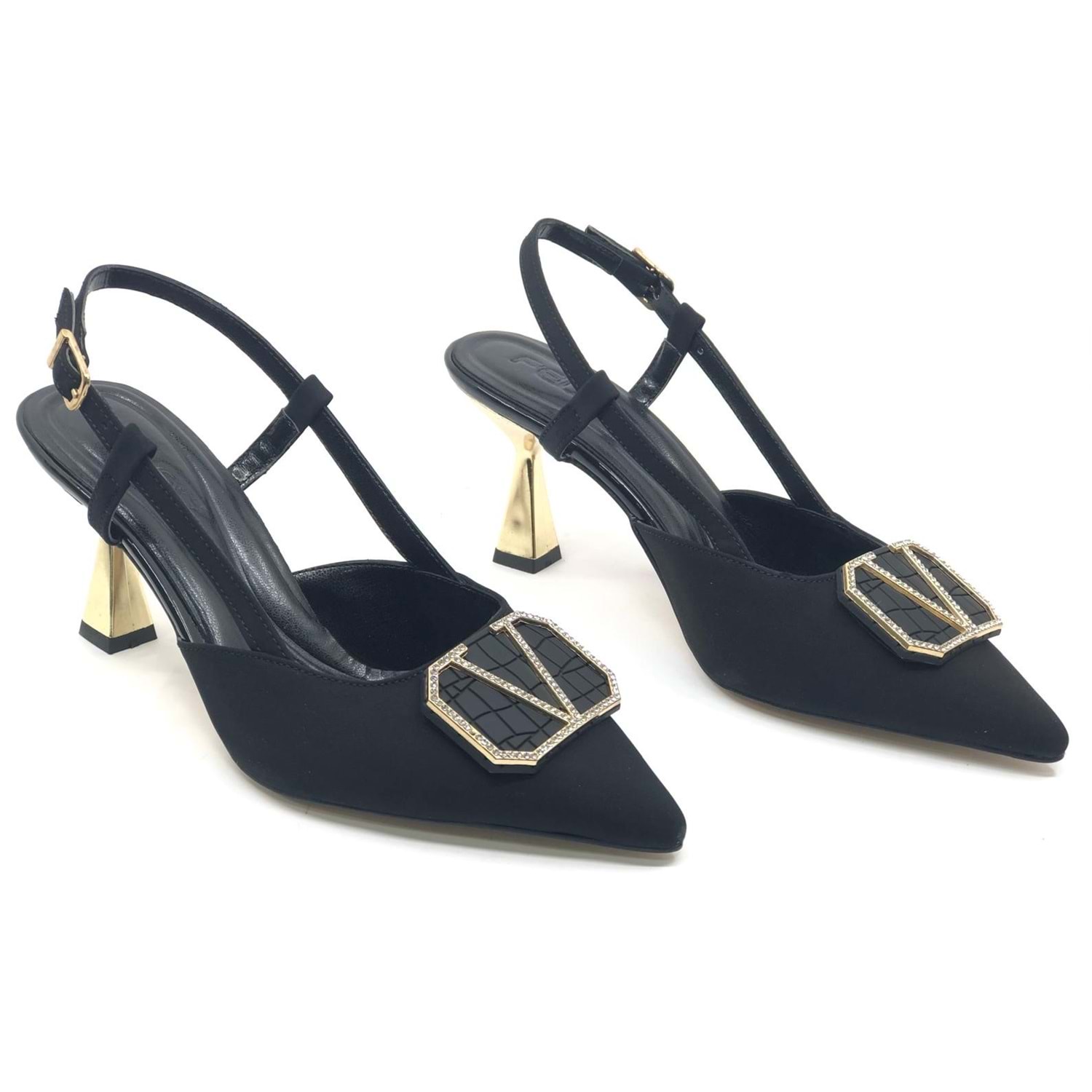 Feles V Toka Detaylı Arkası Açık Stiletto Kadın Topuklu Ayakkabı
