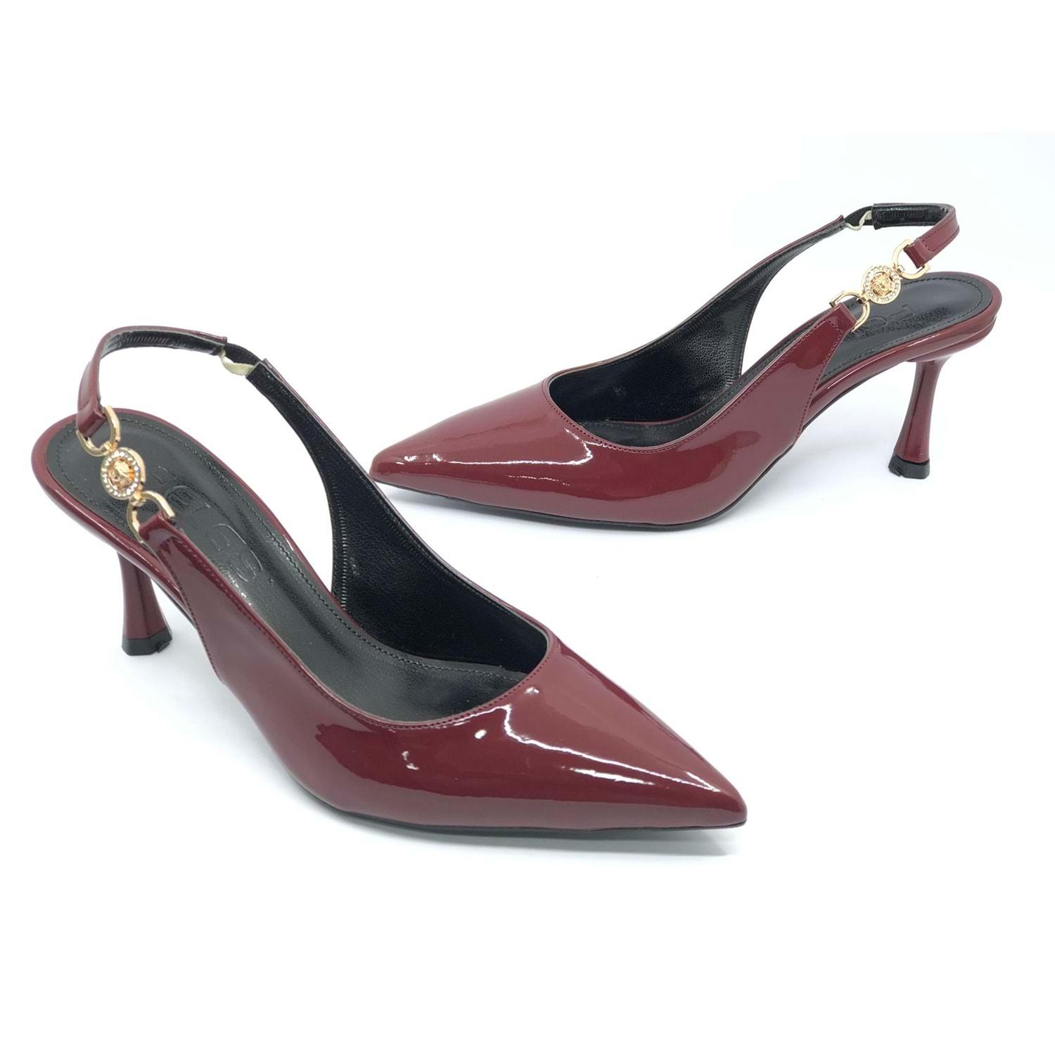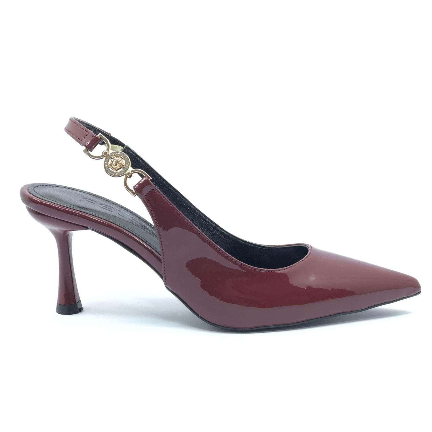 Feles Yan Toka Detaylı Arkası Açık Stiletto Kadın Topuklu Ayakkabı