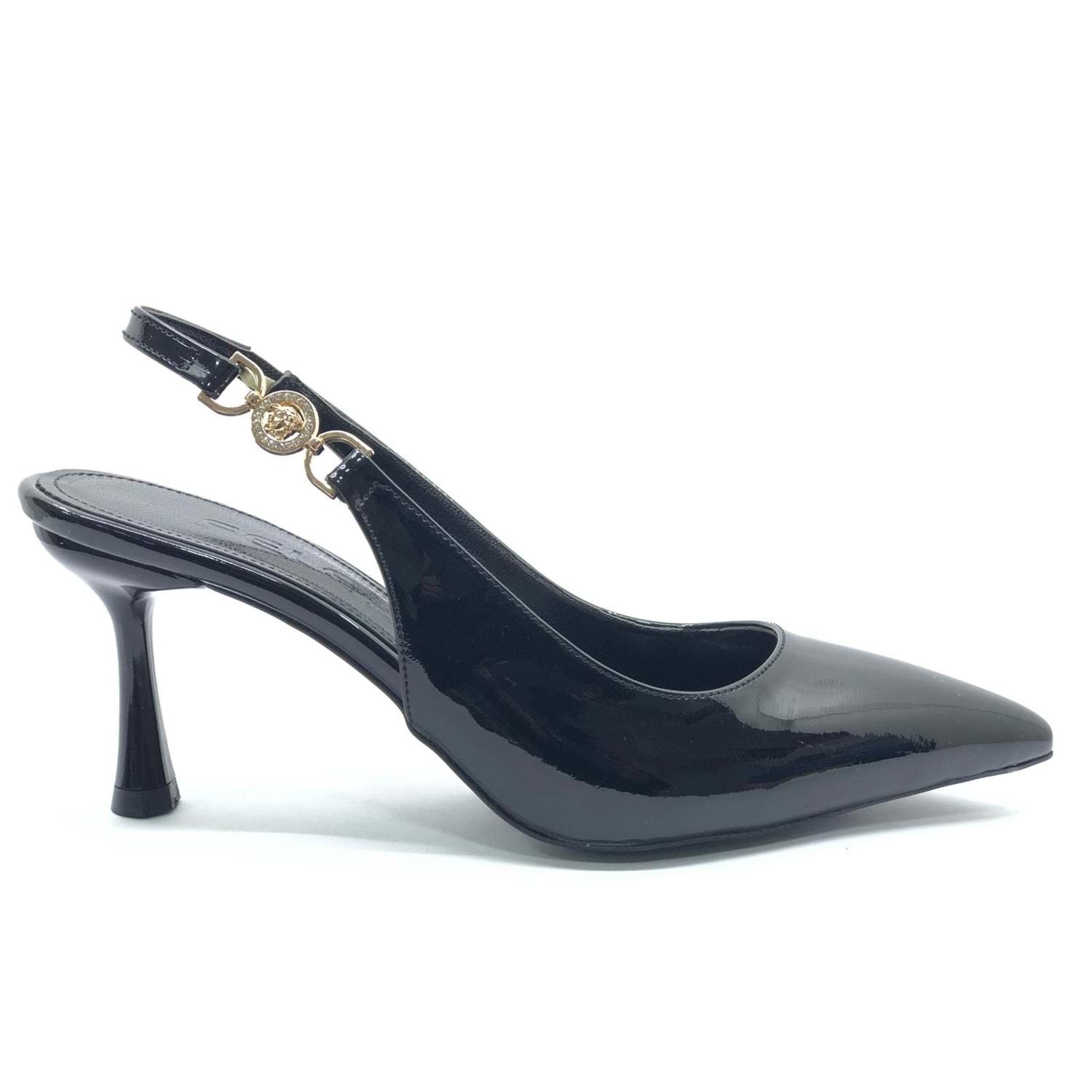 Feles Yan Toka Detaylı Arkası Açık Stiletto Kadın Topuklu Ayakkabı