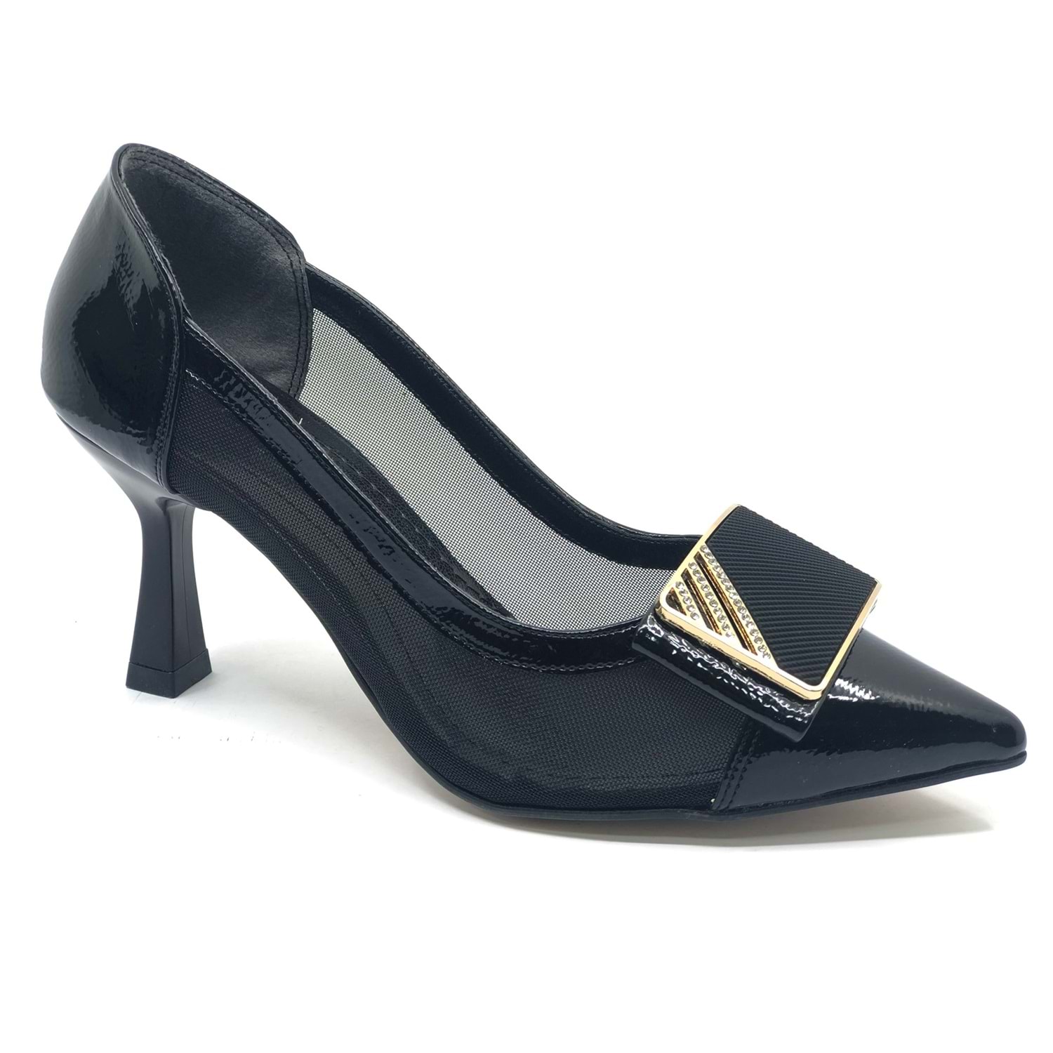 Feles Yanı Şeffaf Taş Toka Detaylı Kadın Topuklu Ayakkabı