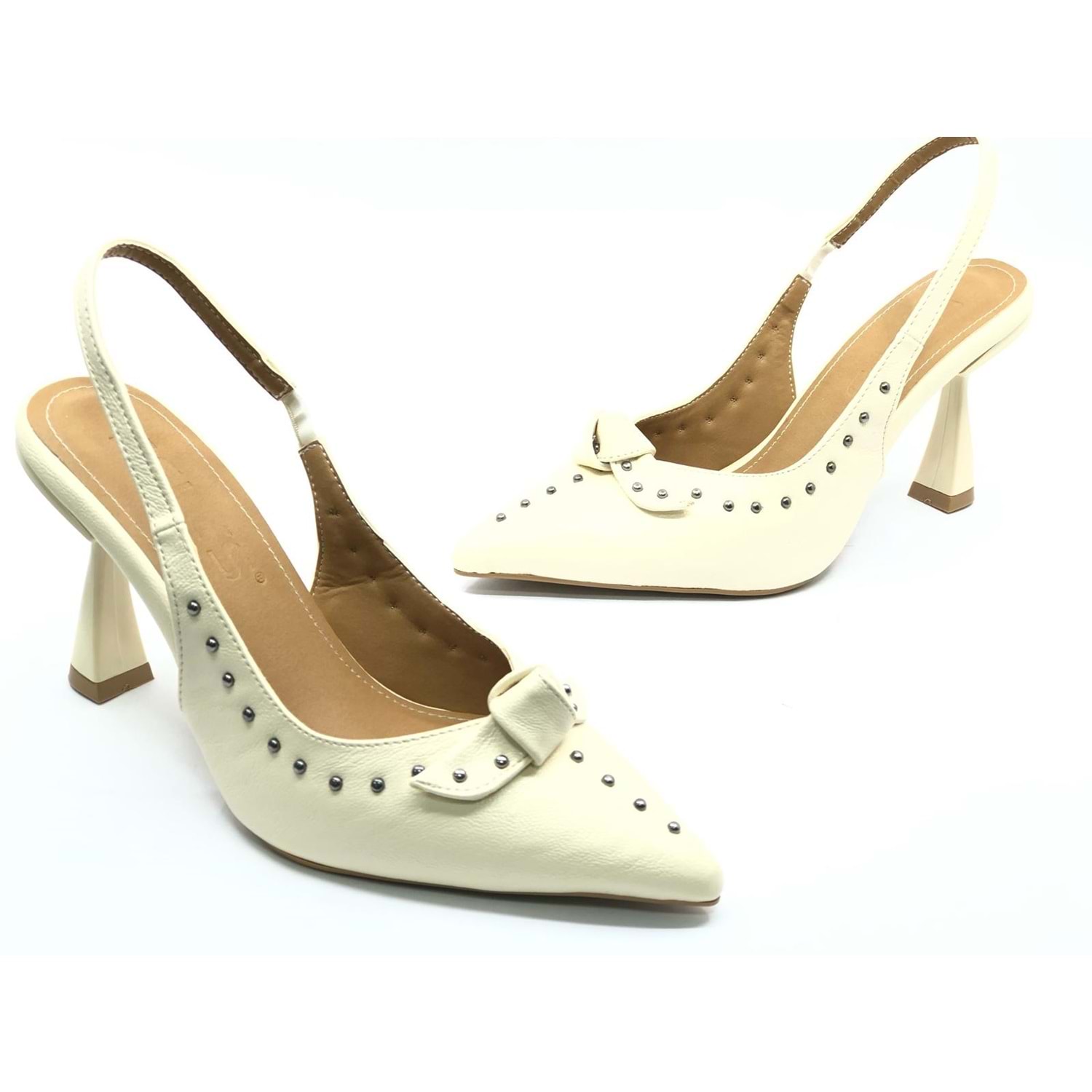 Feles Zımba Kurdela Detaylı Arkası Açık Stiletto Kadın Topuklu Ayakkabı