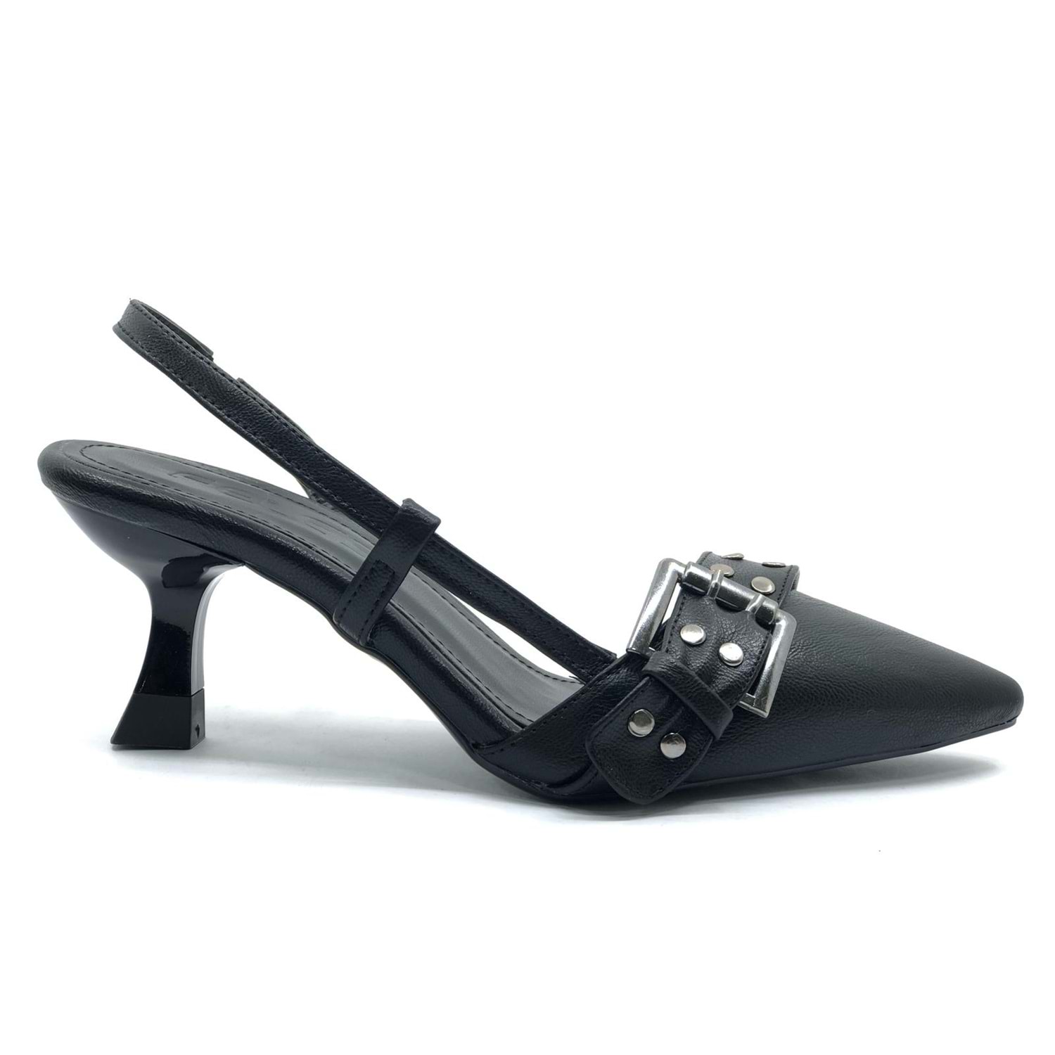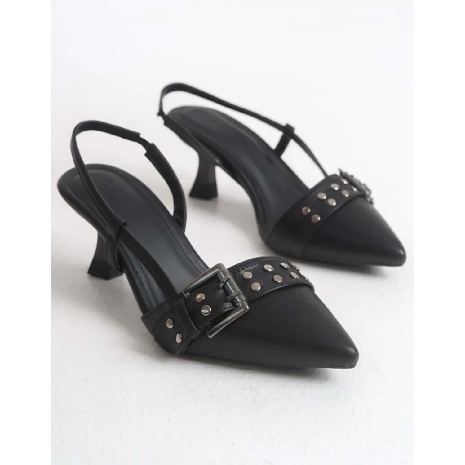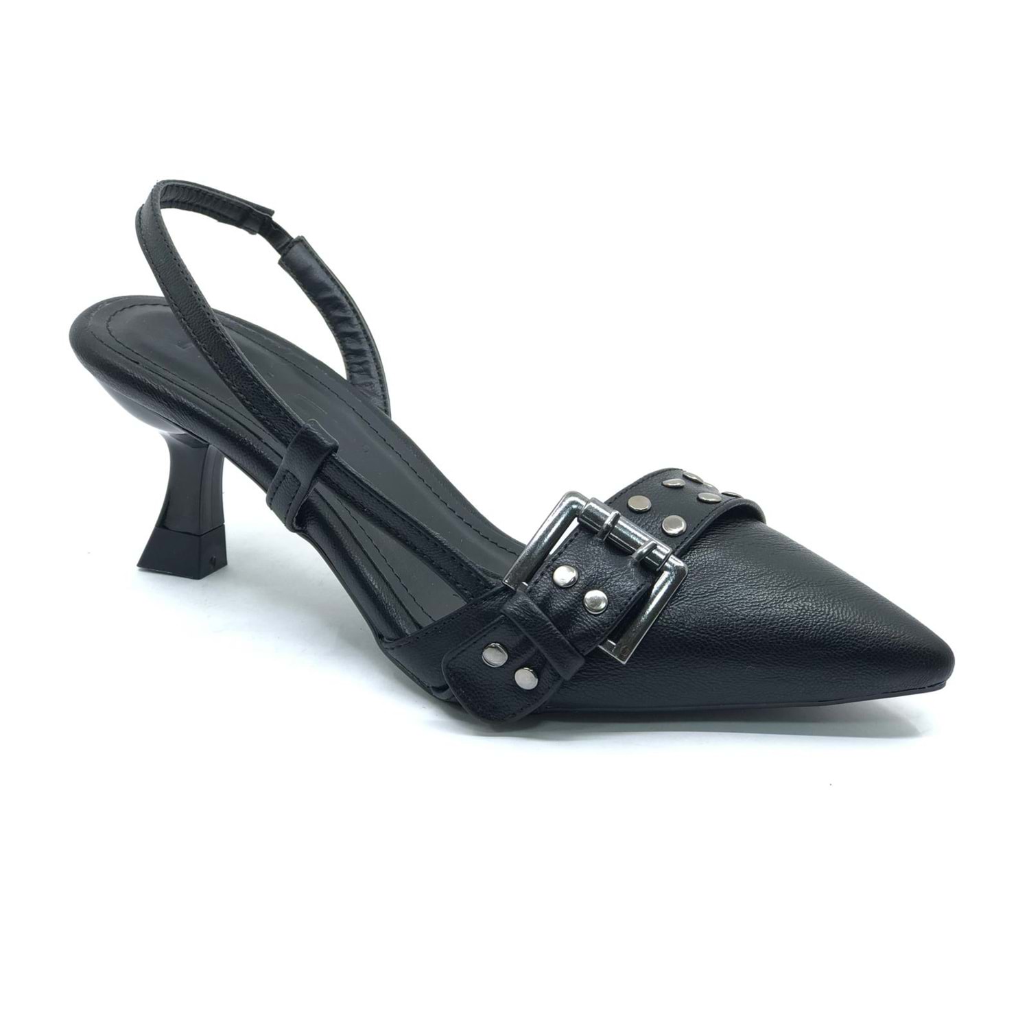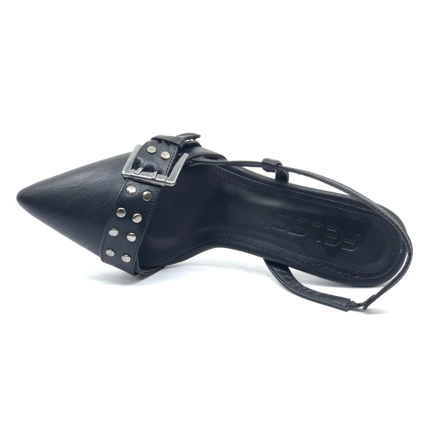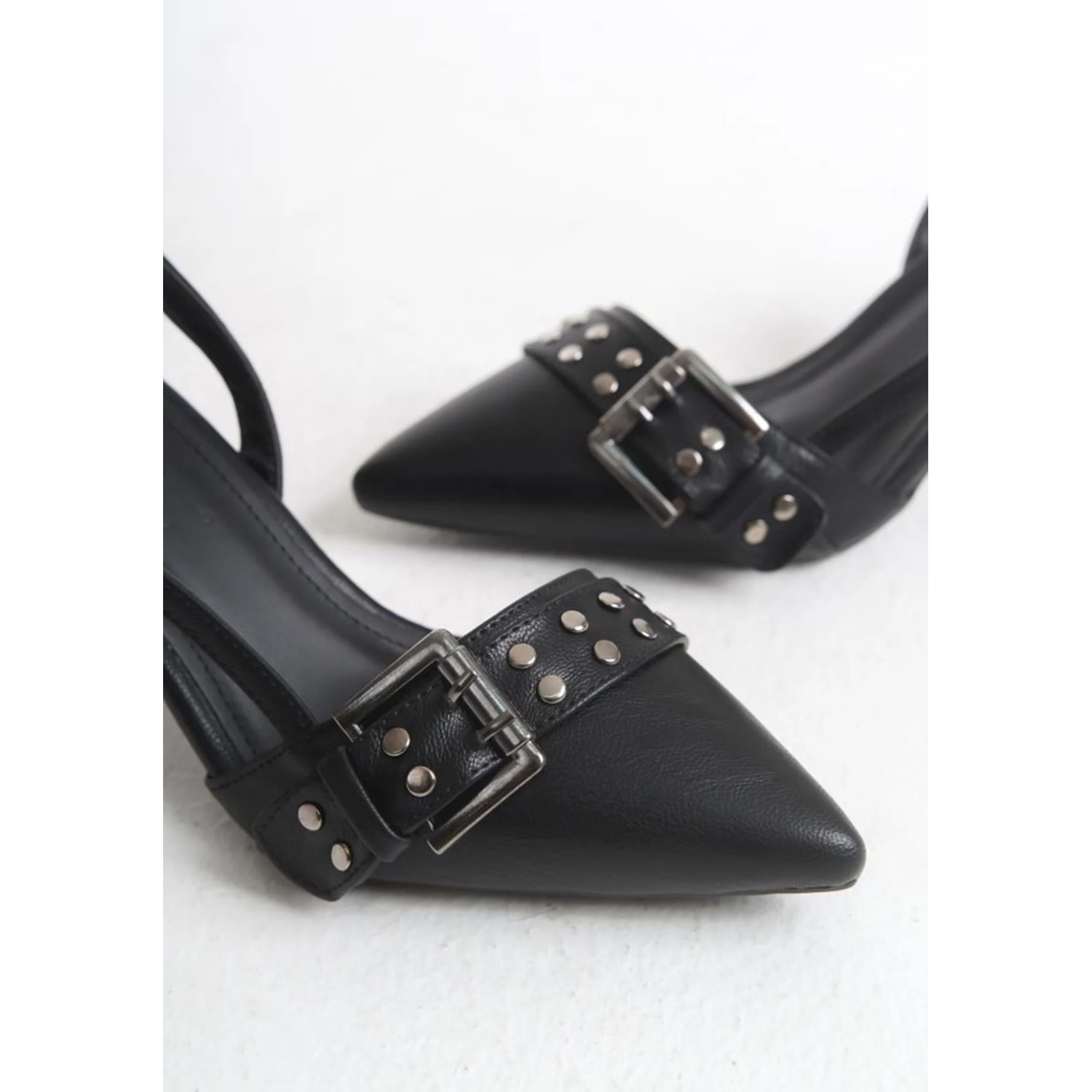 Feles Zımba Toka Detaylı Arkası Açık Stiletto Kadın Topuklu Ayakkabı