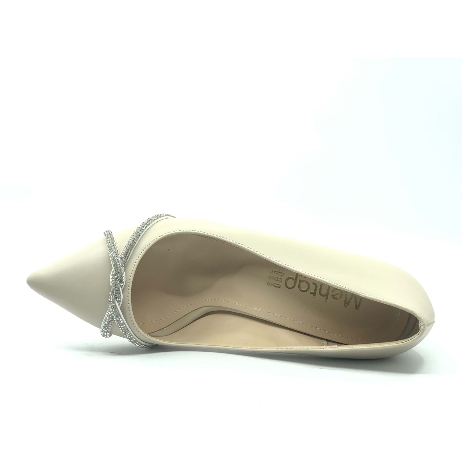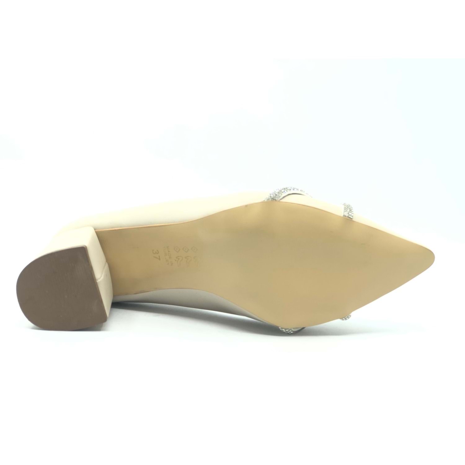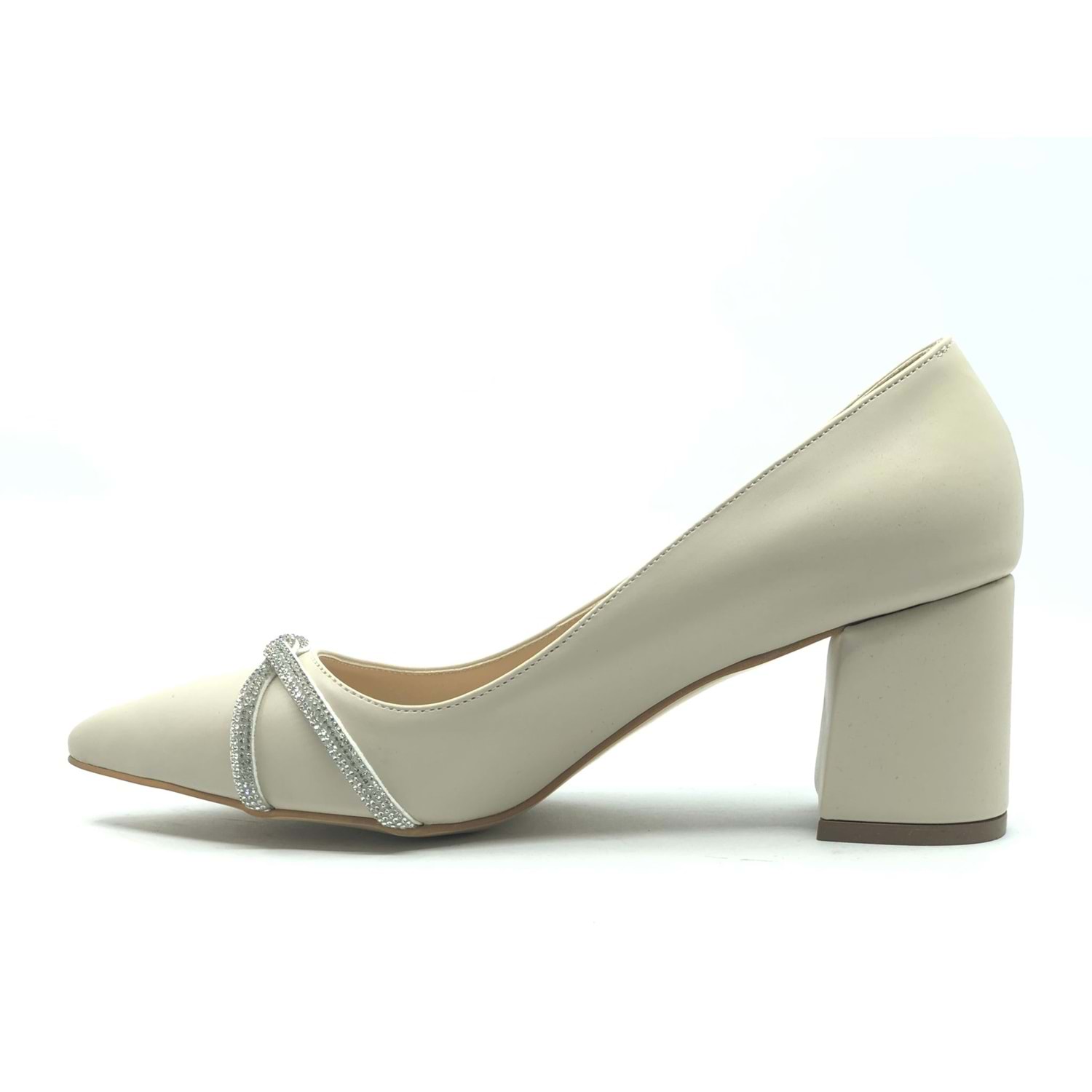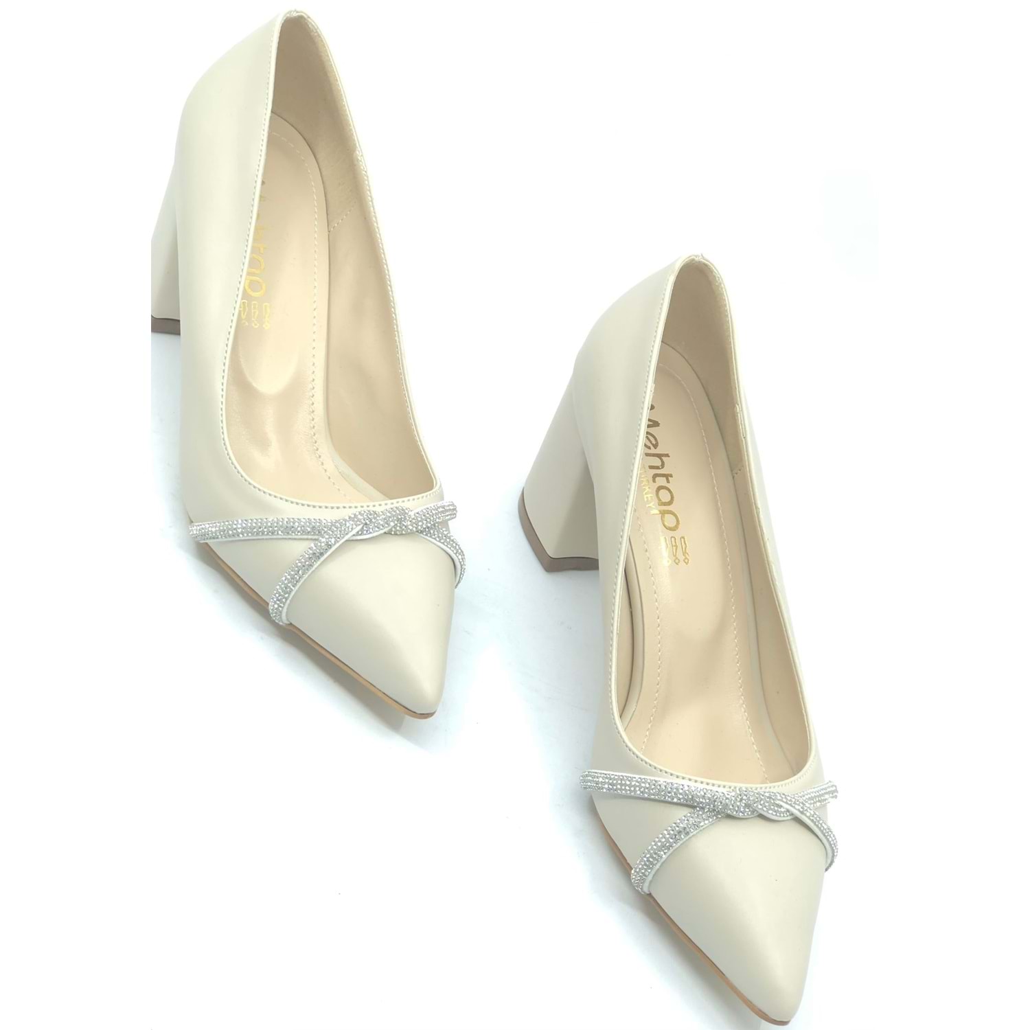 Mehtap Örgü Taş Dekolteli Kalın Topuk Kadın Topuklu Ayakkabı Sitiletto