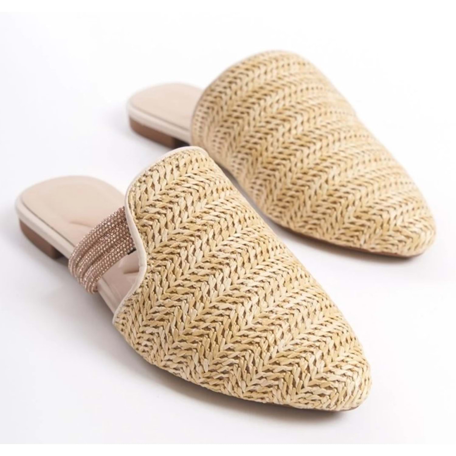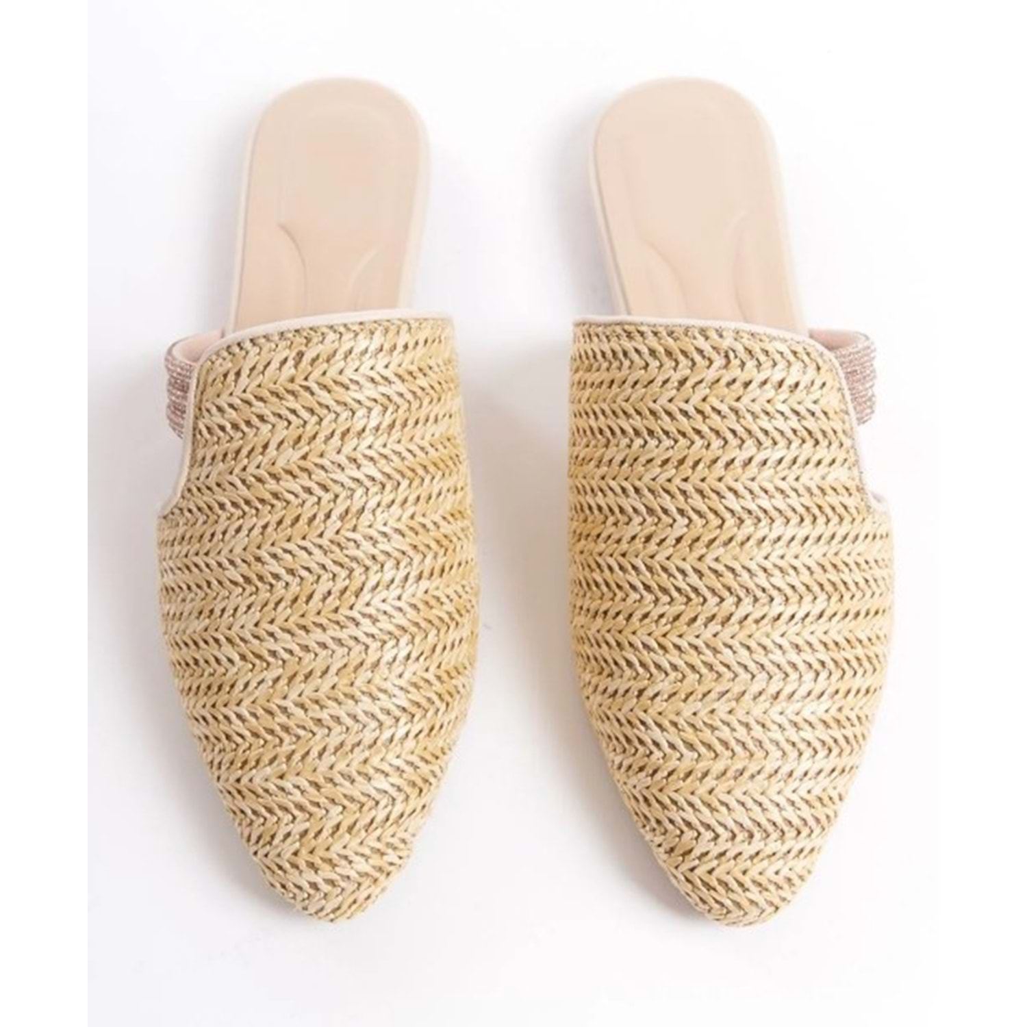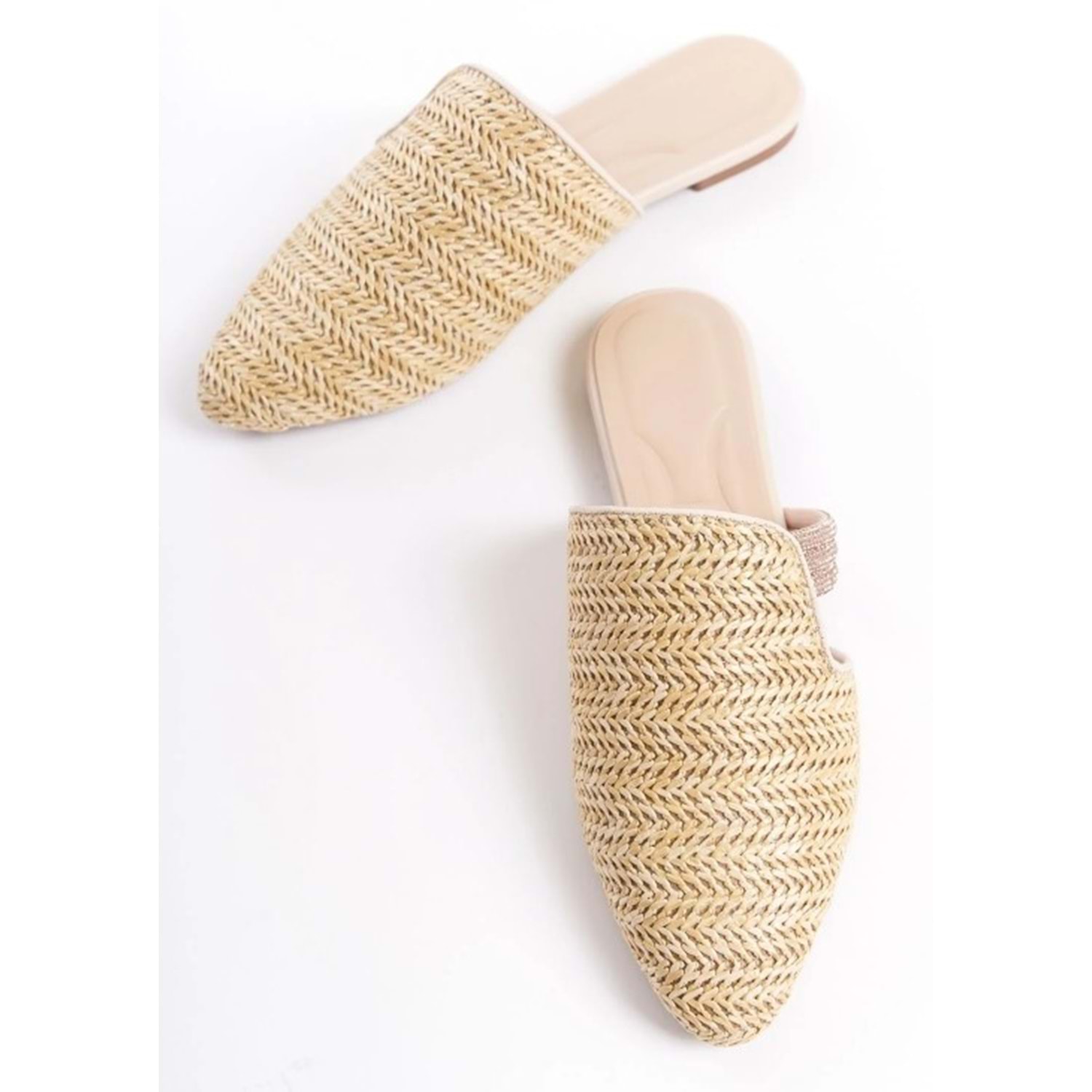 Feles İnce Taban Hasır Detaylı Kadın Terlik