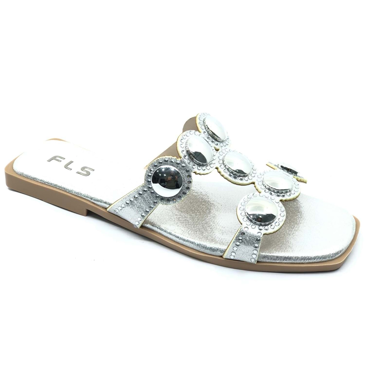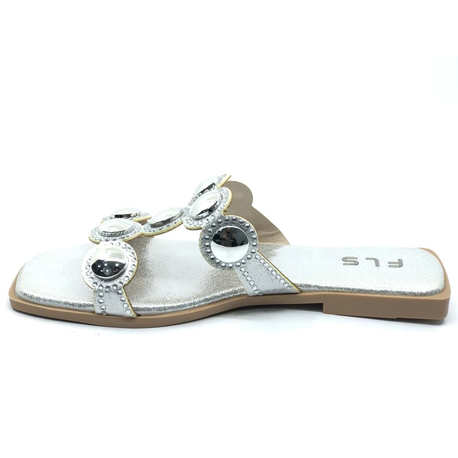 Feles İnce Taban Taş Detaylı Kadın Terlik