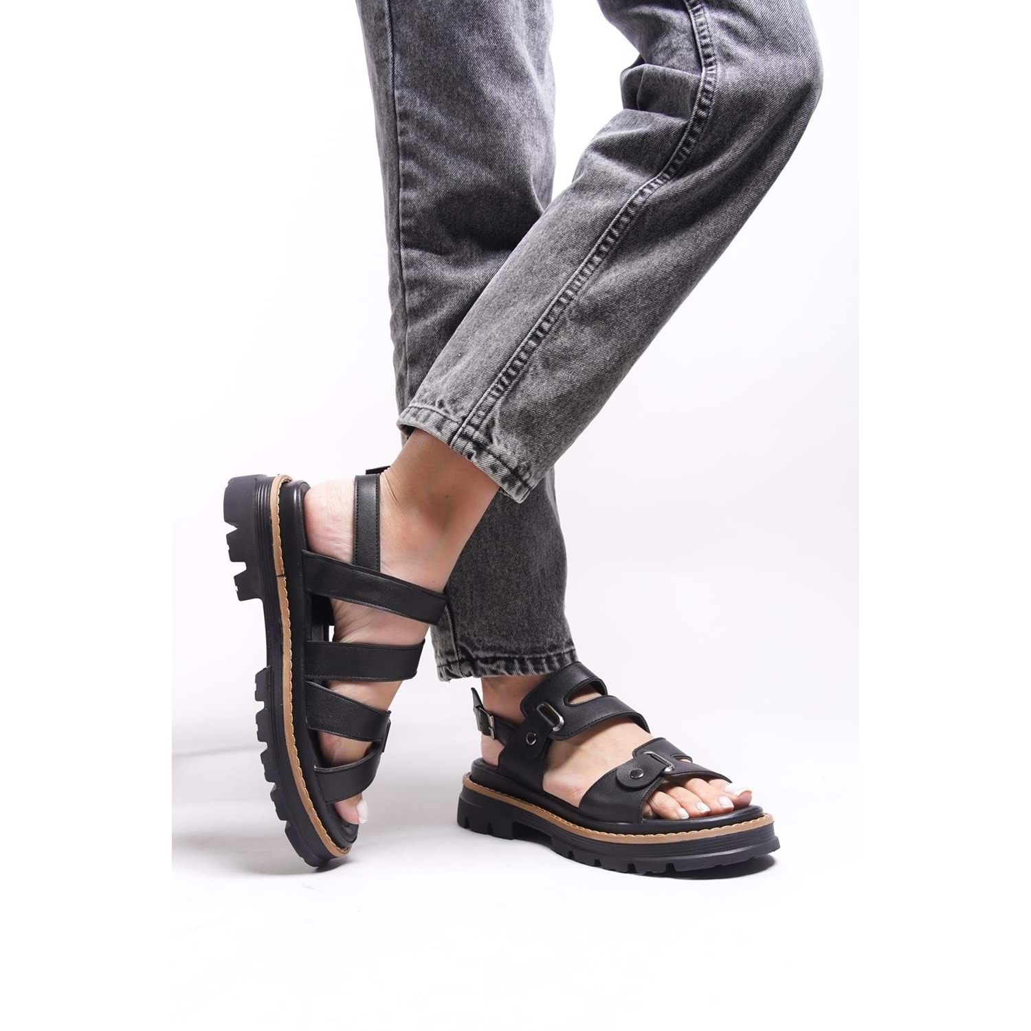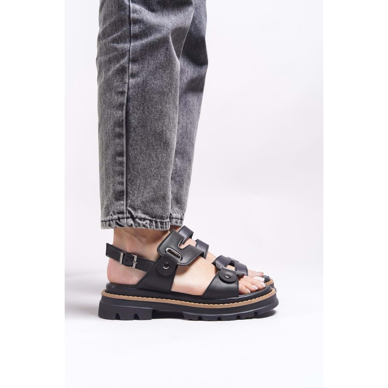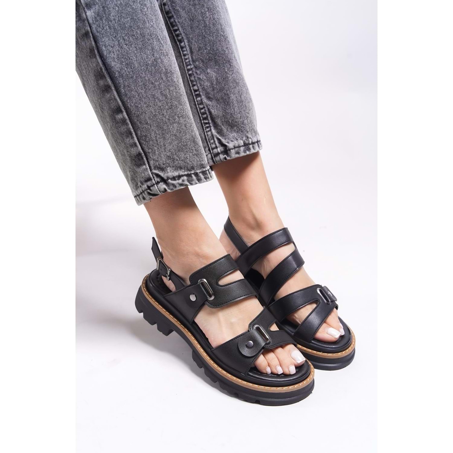 Feles Kalın Taban Zımba Detaylı Kadın Sandalet