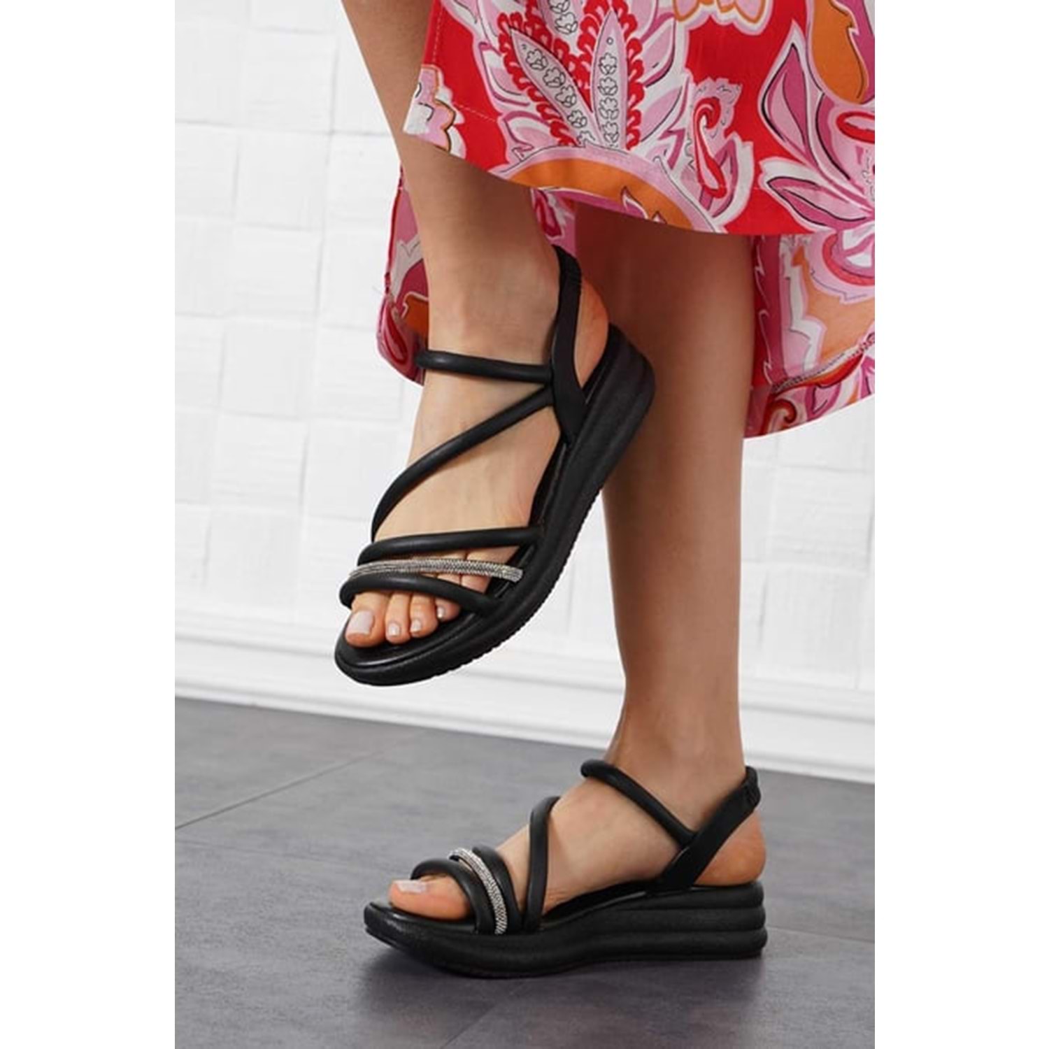 Feles Tek Biye Taşlı Kadın Sandalet