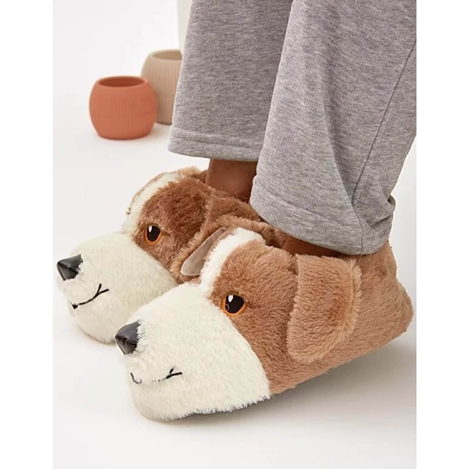 Kocamanlar Sevimli Köpek Figürlü Unisex Hayvanlı Panduf